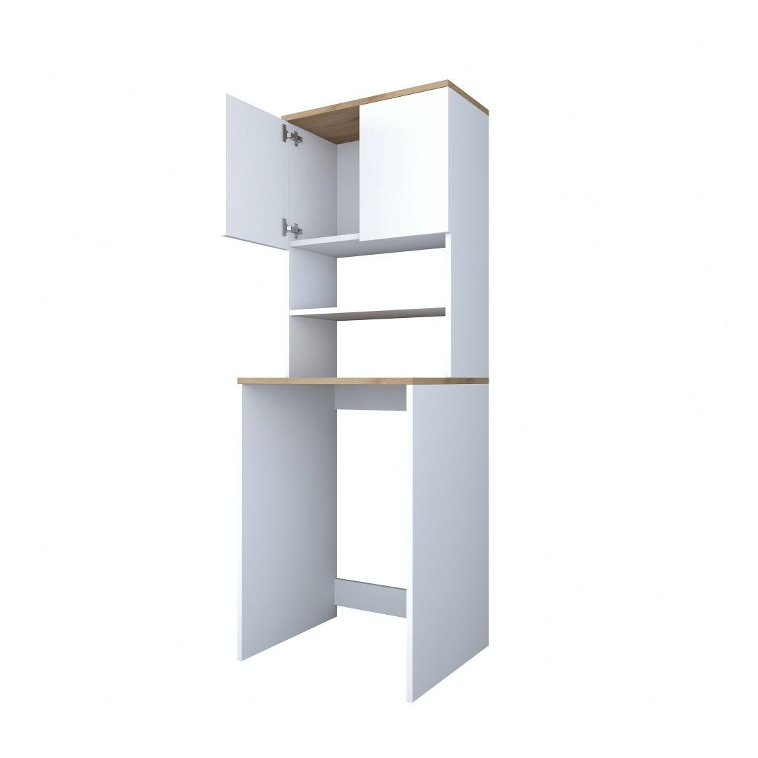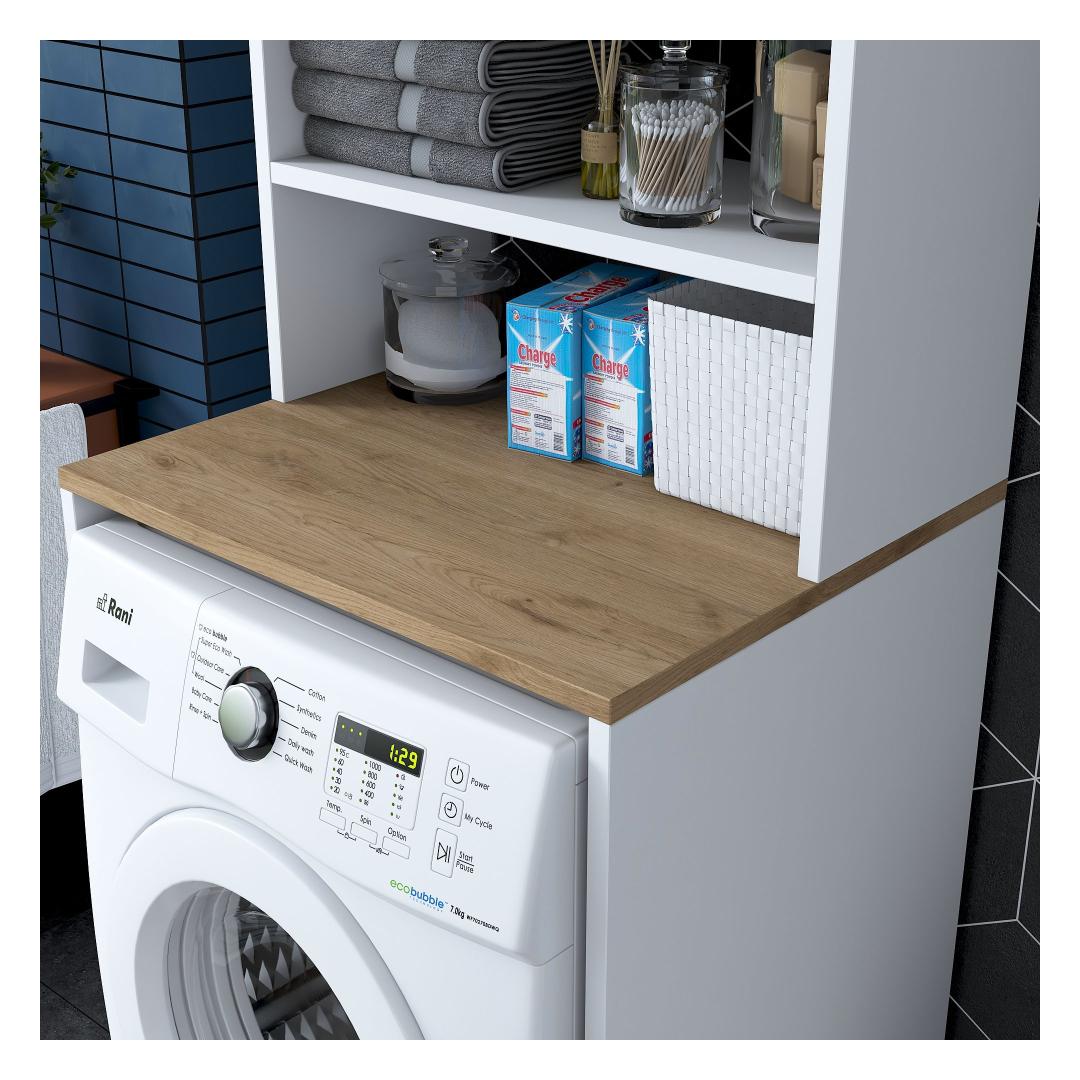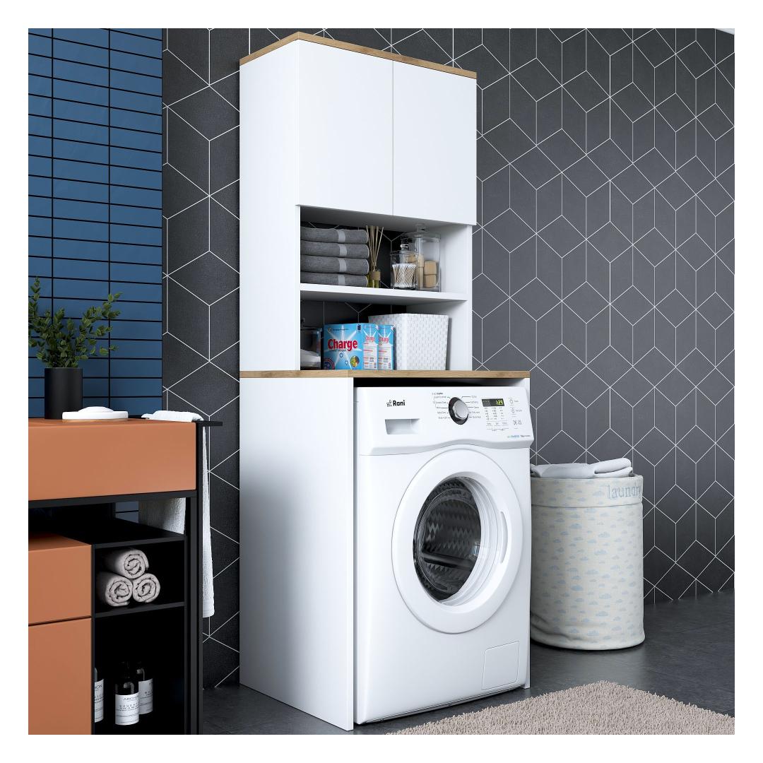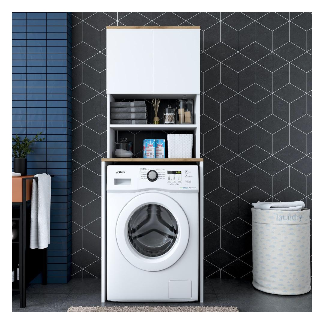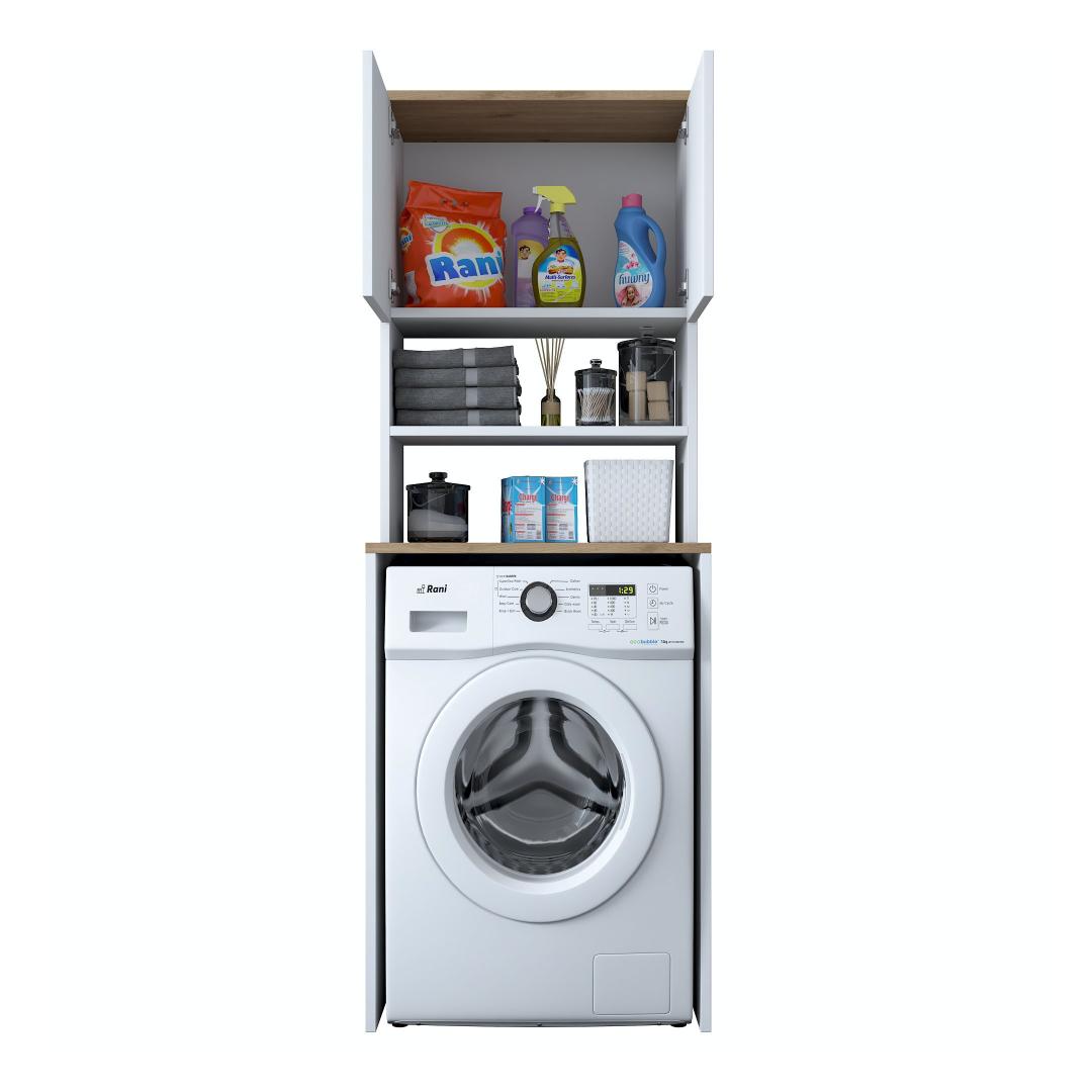 Muunna pesutilasi tyylikkäällä ja toiminnallisella pyykkikaapillaParanna pesutilasi hienolla pyykkikaapilla. Tämä 100-prosenttisesti melamiinipinnoitetusta lastulevystä valmistettu kaappi ei ole ainoastaan kestävä, vaan se myös lisää tilasi tyylikkyyttä. Luo sotkusta vapaa tila runsaalla säilytystilallaRunsas hyllystö ja ylimääräinen kirjahylly, kaappimme tarjoaa runsaasti säilytystilaa kaikille pesutarvikkeillesi. Sano hyvästit sotkuisille työtasoille ja hei hyvin järjestetylle pyykkituvalle.Täydennä kodin sisustusta modernilla ja uudenlaisella muotoilullaKirkkaan värinen ja moderni muotoilu, pyykkikaappi sulautuu vaivattomasti mihin tahansa kodin sisustukseen. Valkoisen ja pähkinäpuun väriyhdistelmä tuo tilaan hienostuneisuutta, mikä tekee siitä pesutilasi keskipisteen. Rakennettu kestävyyttä ja lujuutta vartenTämä kaappi on valmistettu 18 mm paksusta melamiinipinnoitetusta lastulevystä kestävyyden ja lujuuden takaamiseksi. Se kestää helposti pesukoneesi ja muiden tavaroiden painon ja tarjoaa sinulle luotettavan säilytysratkaisun vuosiksi eteenpäin. Tekniset tiedot:Materiaali:Materiaali:100% melamiinipinnoitettu lastulevyPaksuus:18mmLeveys:65cm,Korkeus:183.6cm,Syvyys:60cmTilan hyllykoko:Leveys:65cm,Korkeus:91.8cm,Syvyys:30cmVoidaan kiinnittää seinään lisää vakautta ja turvallisuuttaVärjennä pyykkihuoneesi jo tänään pyykkikaapillamme ja nauti sotkusta vapaasta ja tyylikkäästä tilasta. Tilaa nyt ja koe toiminnallisuuden ja tyylikkyyden täydellinen yhdistelmä. Väri: Valkoinen pähkinä