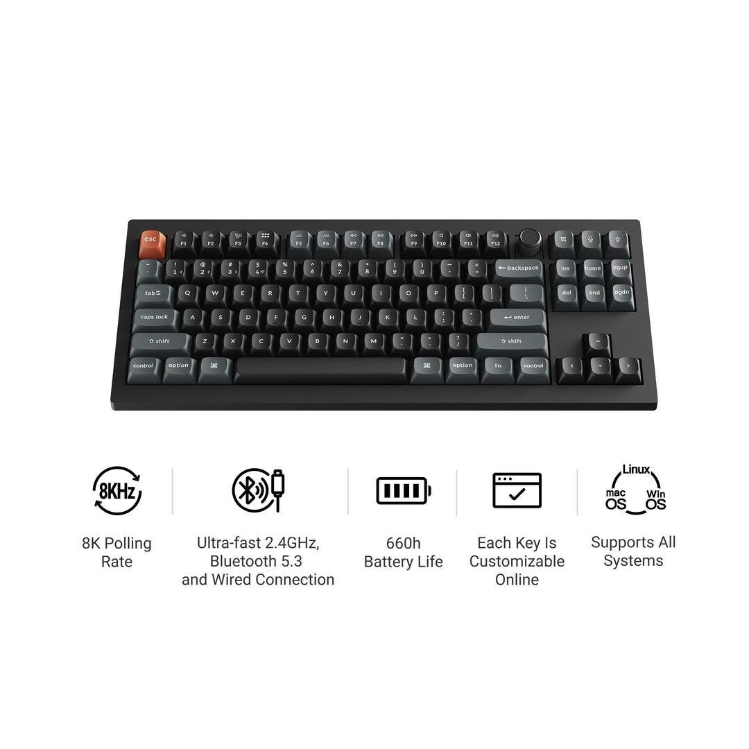 Tapaat Keychron V3 Ultra 8K:n, seuraavan sukupolven langattoman TKL:n mukautetun mekaanisen näppäimistön, joka on suunniteltu vertaansa vailla olevaan suorituskykyyn. Se tukee langatonta 2,4 GHz:n, Bluetooth 5.3:n ja langallisia yhteyksiä. ZMK-ohjelmistolla varustettu näppäimistö mahdollistaa 8K-polling-nopeuden langattomassa tilassa ja tarjoaa jopa 660 tunnin akunkeston. Se on parannettu useilla akustisella vaahtomuovikerroksilla ja Keychron Launcherilla, joten se tarjoaa hienostuneen kirjoituskokemuksen ensiluokkaisella äänellä ja täydellisellä mukauttamisella.