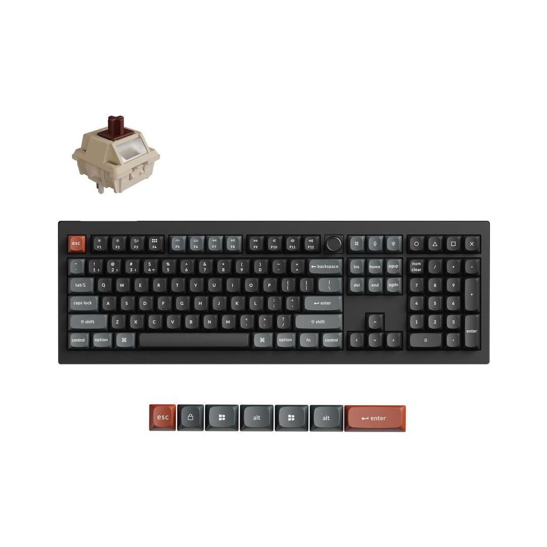 Mac-käyttäjien käyttökokemusta silmällä pitäen, mutta silti yhteensopivuus Windows-laitteille säilyttäen, V6 Ultra 8K:n mukana tulee järjestelmän vaihtokytkin ja ylimääräinen sarja mukautettuja näppäinkorkkeja sekä Windows- että macOS-järjestelmille. Voit nyt tallentaa näppäimistöön kaksi erilaista asettelua, yhden kummallekin järjestelmälle.