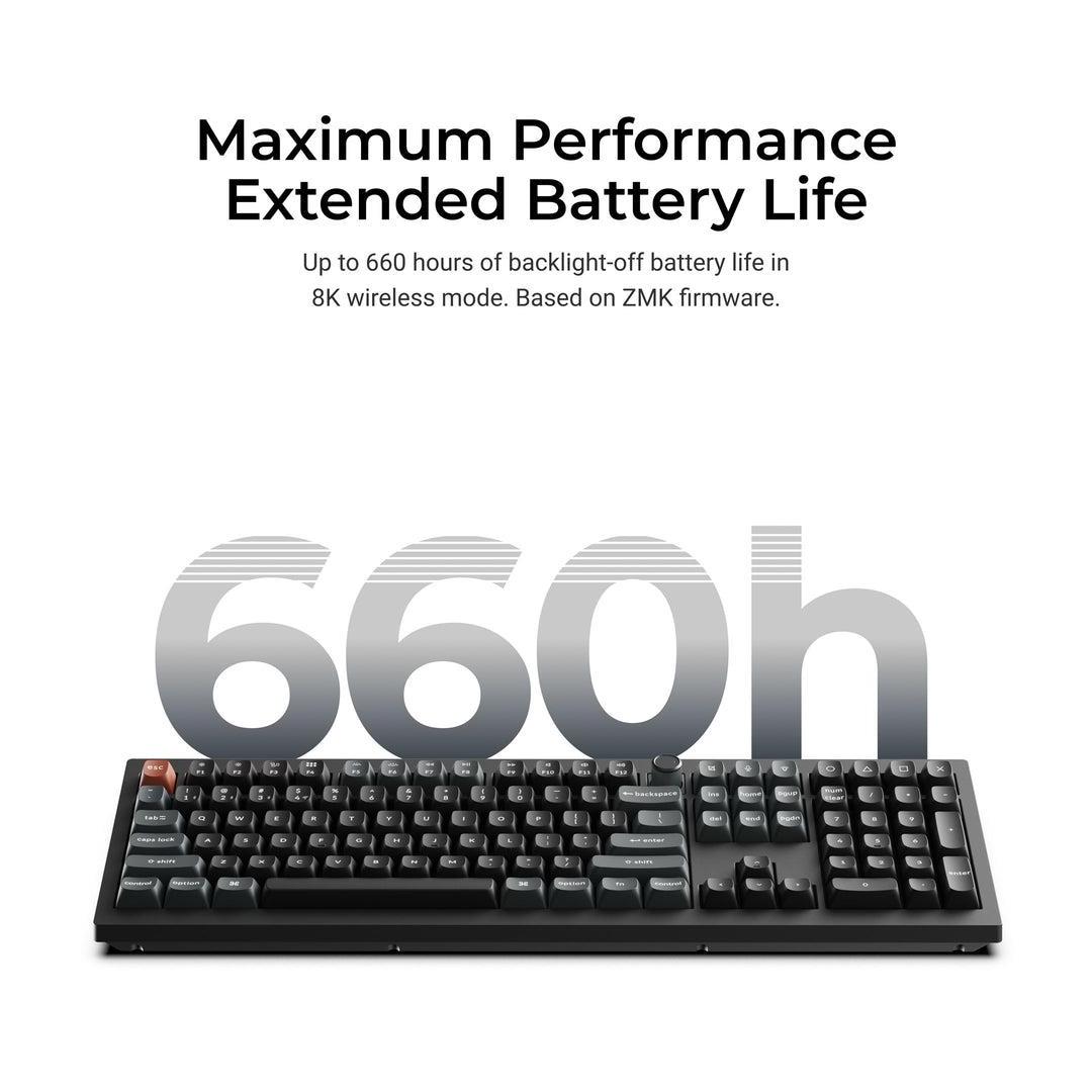 Tutustu Keychron V6 Ultra 8K:hon, joka on seuraavan sukupolven 100 % täysikokoinen langaton, mukautettu mekaaninen näppäimistö, joka on suunniteltu vertaansa vailla olevaan suorituskykyyn. Se tukee langattomia 2,4 GHz:n, Bluetooth 5.3:n ja langallisia yhteyksiä. ZMK-ohjelmistolla varustettu näppäimistö mahdollistaa 8K-polling-nopeuden langattomassa tilassa ja tarjoaa jopa 660 tunnin akunkeston. Se on parannettu useilla akustisella vaahtomuovikerroksilla ja Keychron Launcherilla, joten se tarjoaa hienostuneen kirjoituskokemuksen ensiluokkaisella äänellä ja täydellisellä mukauttamismahdollisuudella.