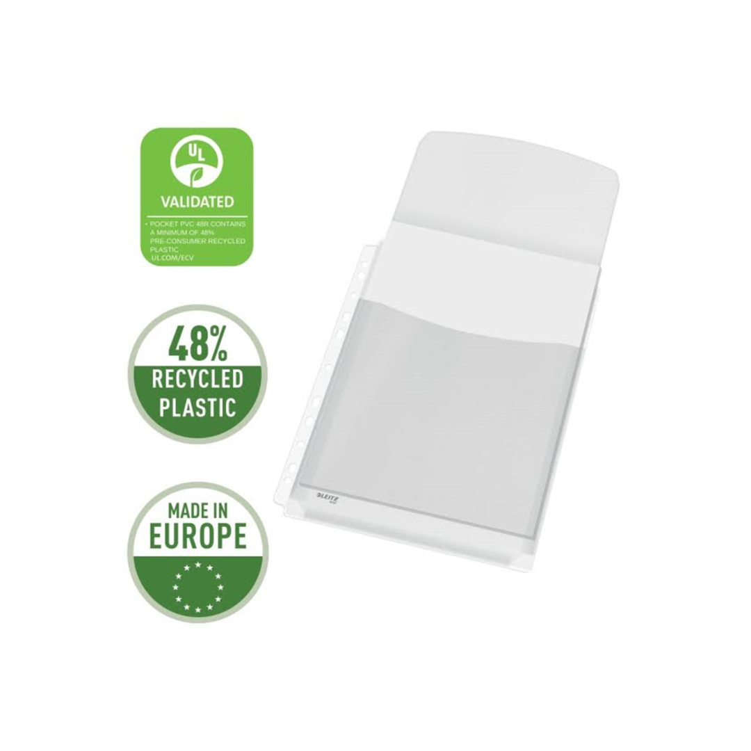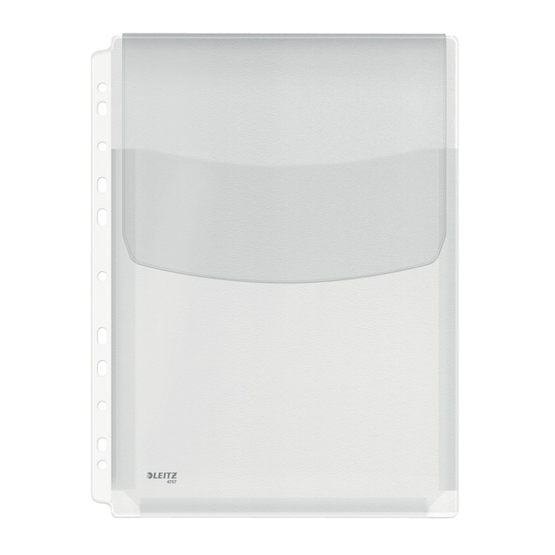 Plastic pocket U-pocket A4 binding, with flap, 170mic, up to 200 sheets, 5pcs/pack, Leitz