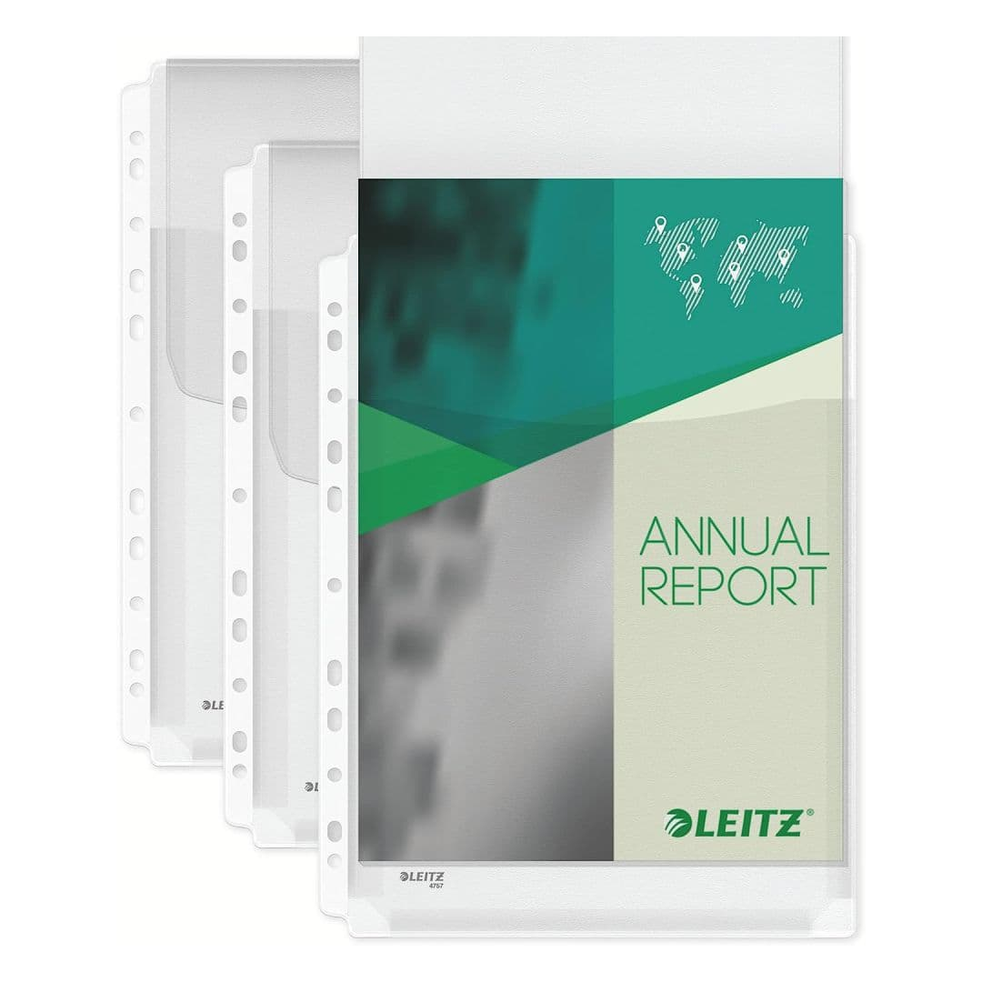 Muovitaskullinen U-taskullinen A4-sidonta, läpällä, 170 mikronia, jopa 200 arkkia, 5 kpl/pkt, Leitz
