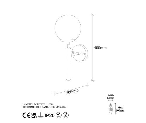 Max. Bulb Size: Diameter: 6 Height: 9 cm