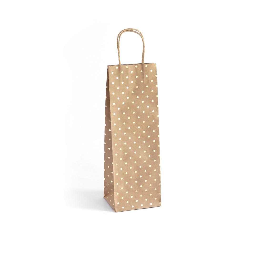 Paperipussi, jossa on metallinhohtoisia kultaisia täpliä.