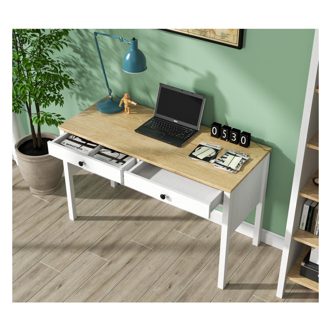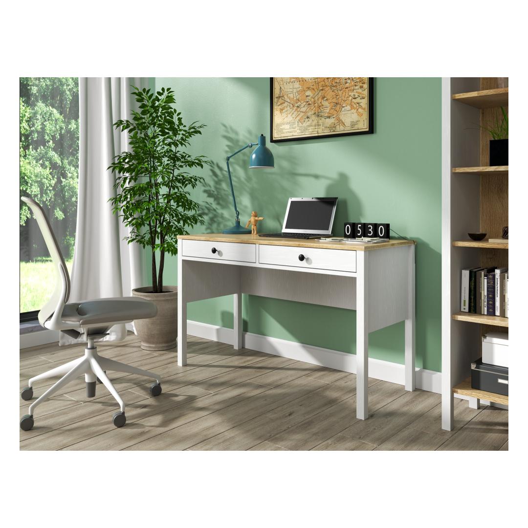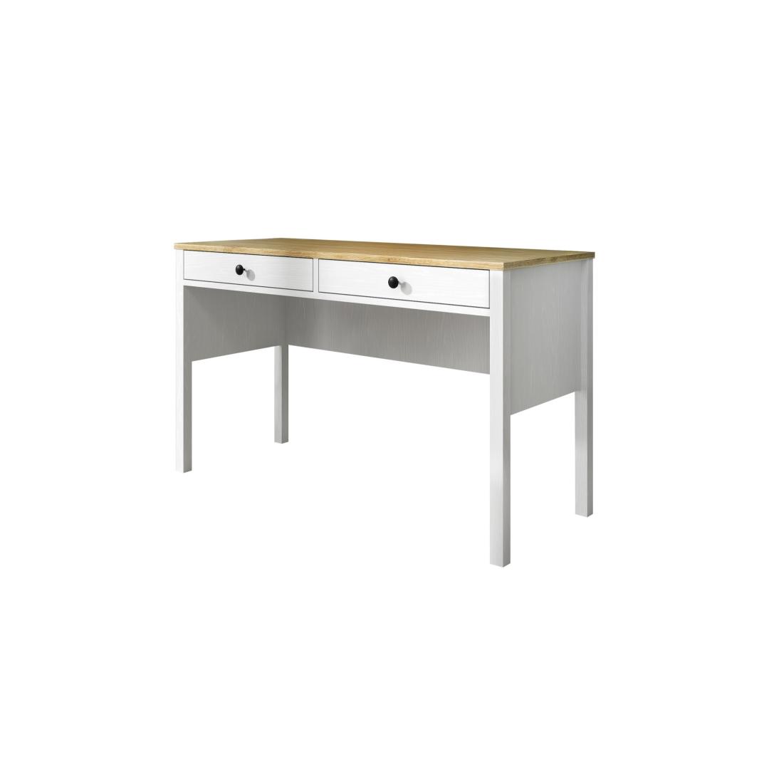 Muuda oma õpingute ruum produktiivsuse pühamuks meie kauni õpingute laua abil. Valmistatud 100% melamiinkattega puitlaastplaadist, on see laud mitte ainult vastupidav, vaid kiirgab ka elegantsi ja rafineeritust. Sujuv disain, millel on MDF-profiiliga jalad ja metallist käepidemed, lisab igasse ruumi modernse puudutuse.Paranda oma õpingute kogemustLaud, mille laius on 120 cm, kõrgus 73 cm ja sügavus 60 cm, pakub piisavalt ruumi kõigile sinu õpingute tarvikutele. Rohked riiulid pakuvad mugavat hoiustamist raamatutele, kirjutusvahenditele ja muule, hoides sinu tööruumi organiseerituna ja segaduseta. Laua kinnitamise võimalus seina külge lisab stabiilsust ja tagab ohutuse.Tõsta oma sisekujundustPuit- ja valgete värvide kombinatsioon loob šiki ja ajatu ilme, mis sobib igasse sisekujundusstiili. Olgu sul eelistus minimalistliku esteetika või hubase atmosfääri osas, see laud sulandub sujuvalt ning tõstab sinu sisekujundust.Tehnilised andmed:Materjal: 100% melamiinkattega puitlaastplaatPaksus: 18 mmServabandi paksus: 0,8 mmLaht: 120 cmKõrgus: 73 cmSügavus: 60 cmJalad: MDF-profiilKäepidemed: MetallRiiulid: RohkedSeinakinnitus: JahVärv: Puit ja valge Värv: Wooden White