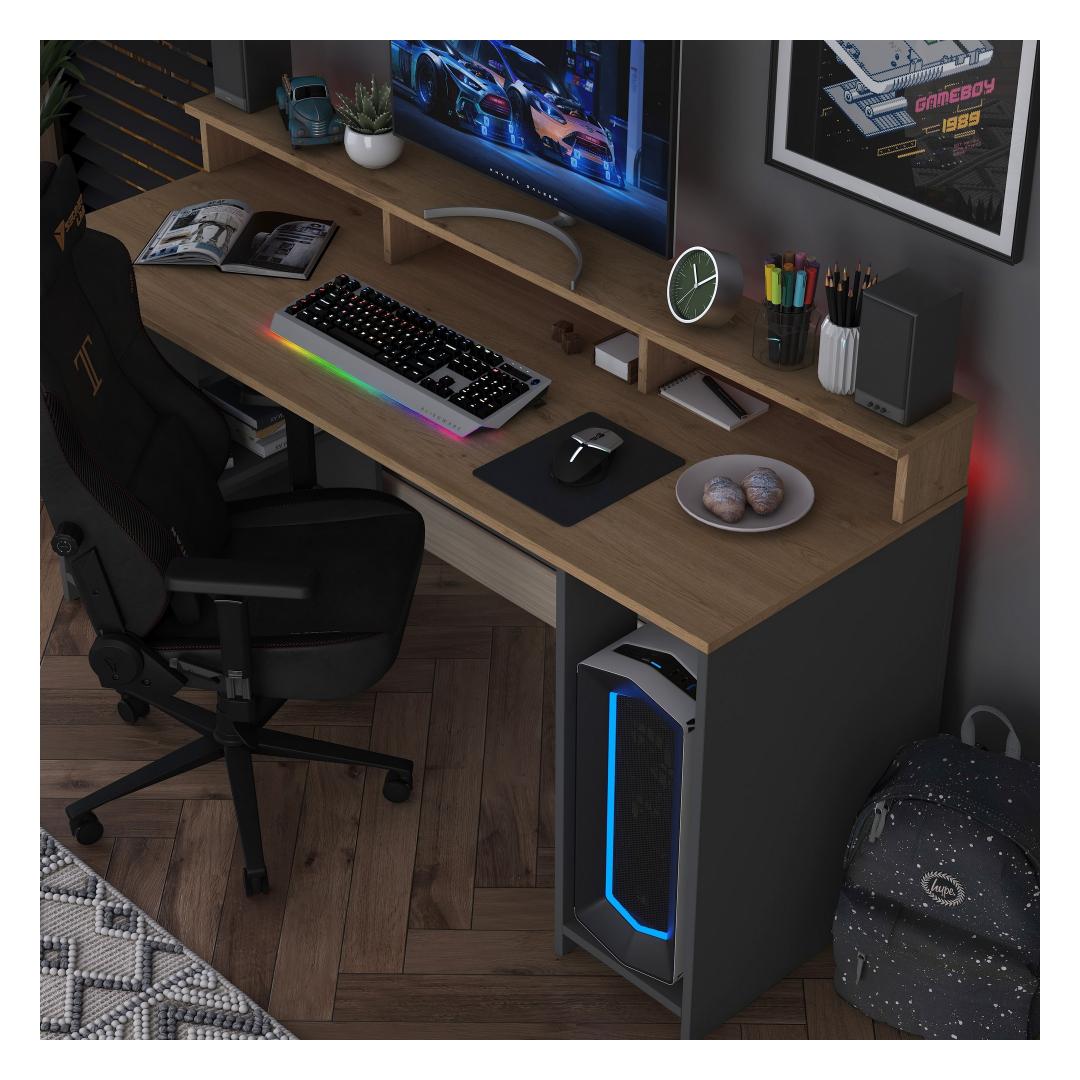 Transformeeri oma õpperuum ülima õppelaua abilLooge meie erakordse õppelaua abil õpperuum, mis inspireerib tootlikkust ja süttib teie õpihimu. See äärmiselt hoolikalt ja detailidele tähelepanu pöörates valmistatud töölaud on loodud selleks, et parandada teie õppimiskogemust nagu kunagi varem. Tõstke oma õppimiskogemusSukelduge meie õppelaua abil teadmiste ja inspiratsiooni maailma. Selle stiilne ja moodne disain koos pähklipuu ja antratsiidi värvide täiusliku seguga tõstab koheselt teie õpperuumi esteetikat. Kogege õppimisrõõmu keskkonnas, mis on nii stiilne kui ka funktsionaalne.Võrratu kvaliteet ja vastupidavusMe mõistame, kui oluline on tugev ja usaldusväärne õppelaud, mistõttu on meie toode valmistatud 100% melamiiniga kaetud e1-kvaliteediga puitlaastplaadist. See tagab erakordse vastupidavuse ja pikaealisuse, mis võimaldab teil keskenduda õppimisele, muretsemata laua kulumise pärast. Optimaalne suurus maksimaalse mugavuse tagamiseksMeie õppelaud on läbimõeldult kujundatud ideaalsete mõõtmetega, et pakkuda teile õppimise ajal maksimaalset mugavust. Laius 160 cm, kõrgus 89. 5 cm ja sügavus 55 cm, pakub see töölaud piisavalt ruumi kõigile teie õppetööks vajalikele asjadele. Ütle hüvasti kitsastele ruumidele ja tere avarale ja korrastatud õpperuumile. Tehnilised üksikasjad:Materjal: Materjal: materjal: 100% melamiiniga kaetud E1-kvaliteediga puitlaastplaatPaksus: 18 mmLaius: 160 cmKõrgus: 89. 5 cmSügavus: 55 cmVärv: Pähkelpuu ja antratsiitMuuda oma õpperutiin meie õppelauaga revolutsiooniliseks ja vabasta oma täielik potentsiaal. Investeeri lauda, mis mitte ainult ei suurenda sinu produktiivsust, vaid lisab sinu õpperuumi ka elegantsi. Tellige kohe ja kogege erinevust ise! Värv: Walnut Anthracite