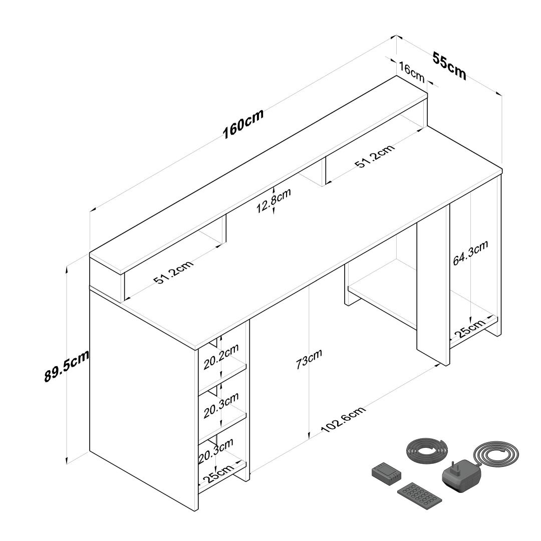Width: 160 cm Height: 89,5 cm Depth: 55 cm