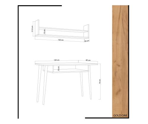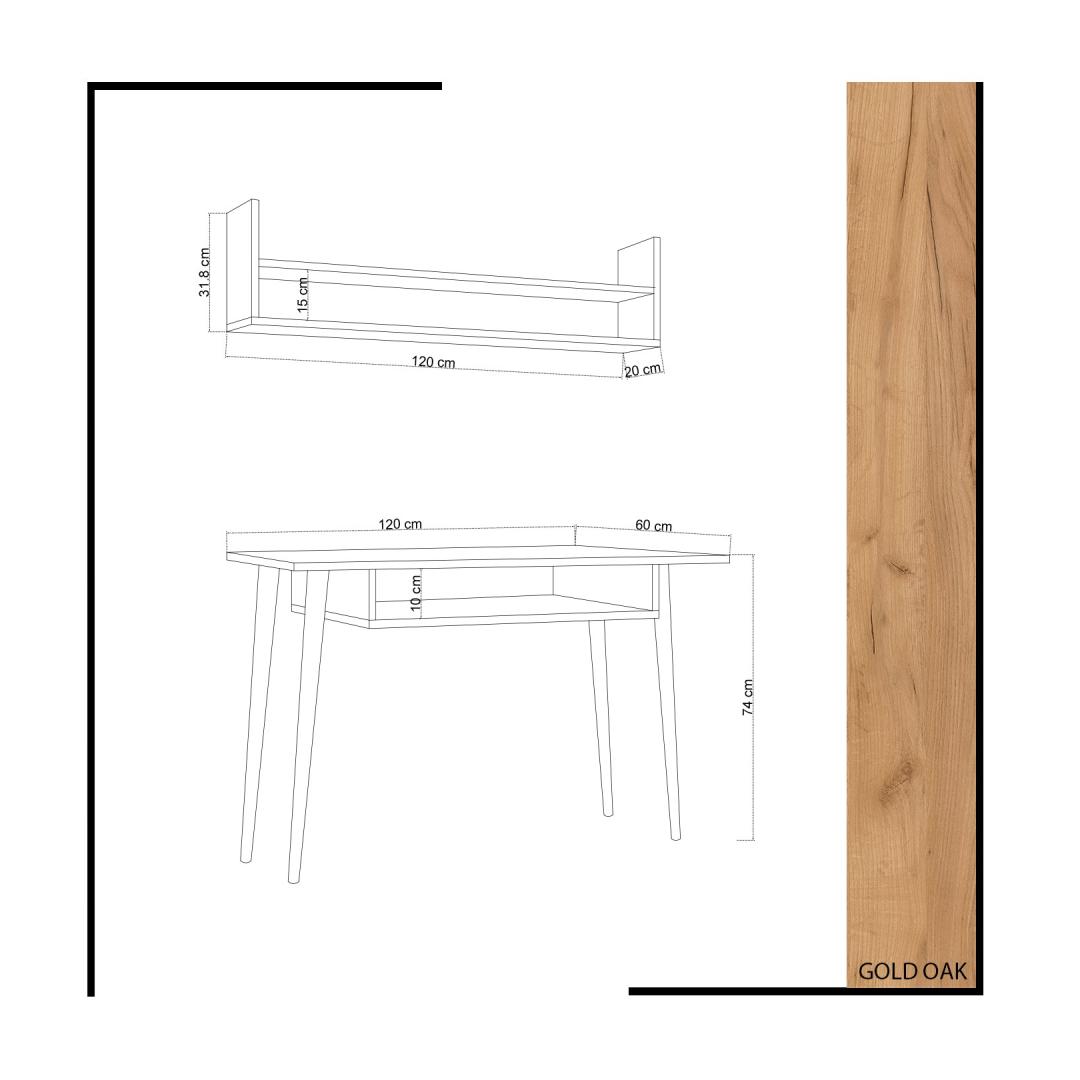 Transformeeri oma tööruum kaasaegse ja stiilse töölauagaKas olete väsinud õppimisest segases ja mitteinspireerivas ruumis? on aeg uuendada oma õpperuumi meie uimastava õppelaua abil. See ülima täpsusega ja detailidele tähelepanu pöörates valmistatud töölaud on mõeldud teie tootlikkuse suurendamiseks ja rahustava atmosfääri loomiseks keskendunud õppimiseks.Tõsta oma tootlikkust kõrgekvaliteediliste materjalidegaMeie töölaud on valmistatud 100% melamiiniga kaetud puitlaastplaadist, mis tagab vastupidavuse ja pikaealisuse. 18 mm paksus lisab laua tugevust, mistõttu sobib see ideaalselt raskete õpikute ja sülearvutite jaoks. Stiilne tammepuust värv lisab elegantsi igasse ruumi, luues keerulise atmosfääri, mis inspireerib teid uute kõrguste saavutamisele. Maksimeerida oma hoiuruumi läbimõeldud disainigaMeie õppelaua 10 cm kõrguse lauaaluse riiuli ja 15 cm kõrguse seinariiuliga varustatud õppelaua pakub piisavalt ruumi raamatute, kirjatarvete ja muude õppetööks vajalike esemete hoiustamiseks. Kirjutuslauda saab ka hõlpsasti seinale kinnitada, tagades stabiilsuse ja ohutuse. Tehnilised üksikasjad:Materjal: Materjal: Materjal: Materjal: Materjal: Materjal: Materjal: Materjal: materjal: 100% melamiiniga kaetud puitlaastplaatPaksus: 18 mmTöölaua suurus: Laius: 120 cm, kõrgus: 74 cm, sügavus: 60 cm.Kirjutuslaua riiuli kõrgus: 10 cmSeina riiuli suurus: Laius: 120 cm, kõrgus: 31,8 cm, sügavus: 20 cm.Riiuli kõrgus: 15 cmVärv: TammVärskendage oma tööruumi juba täna ja kogege meie töölaua abil täiuslikku funktsionaalsuse ja stiili segu. Värv: Oak