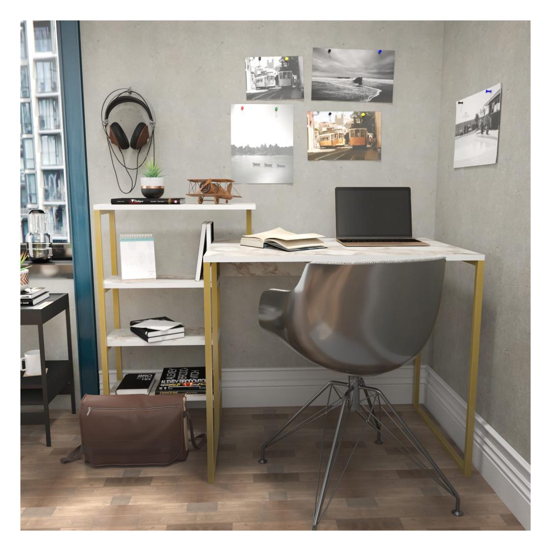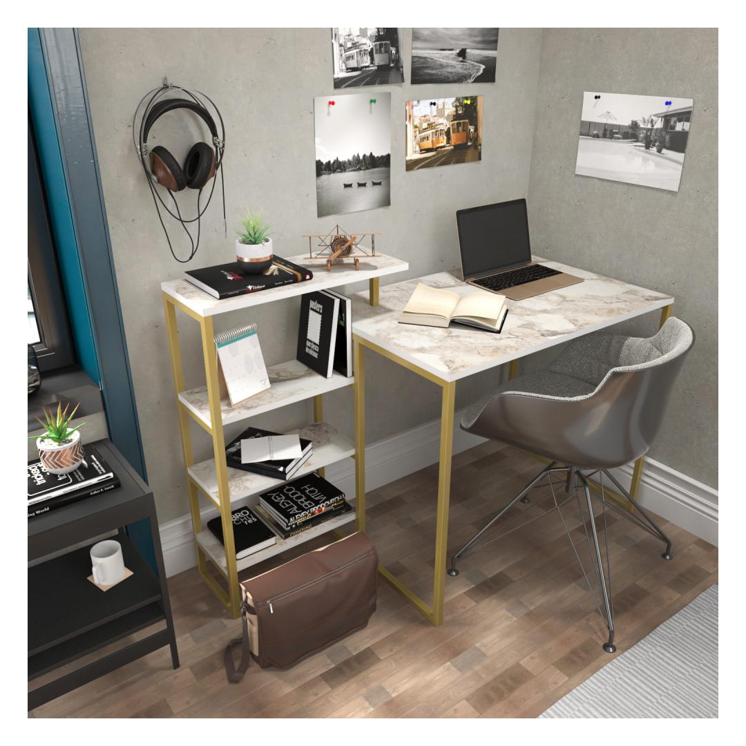 The study desk features a beautiful gold color that adds a touch of luxury and sophistication to any space. The gold finish is not only visually appealing but also creates a warm and inviting atmosphere, making your study sessions more enjoyable and productive.