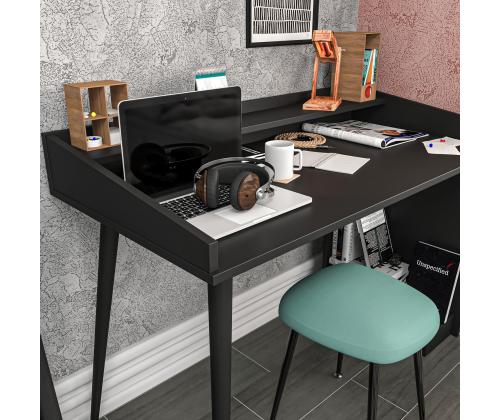 The Study Desk is designed in a sleek black color, adding a touch of sophistication to any room. The black finish effortlessly complements any decor style, making it a versatile choice for both homes and hotels. Transform your study space into a visually appealing and inviting area that inspires you to study and achieve your goals.