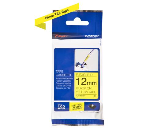Teippi/merkintäteippi BROTHER TZE-FX631 Flexi 12mm x 8m musta/keltainen musta/keltainen