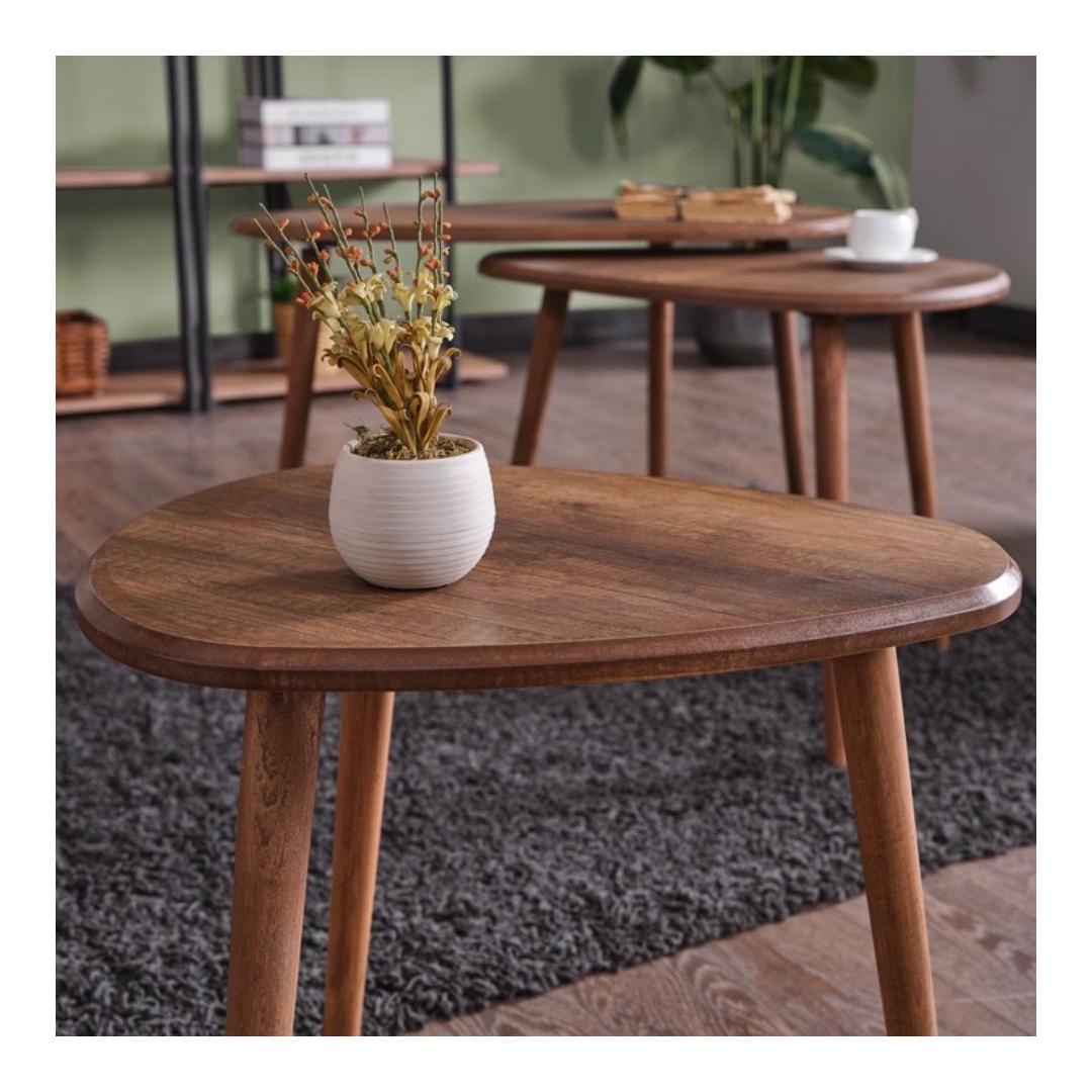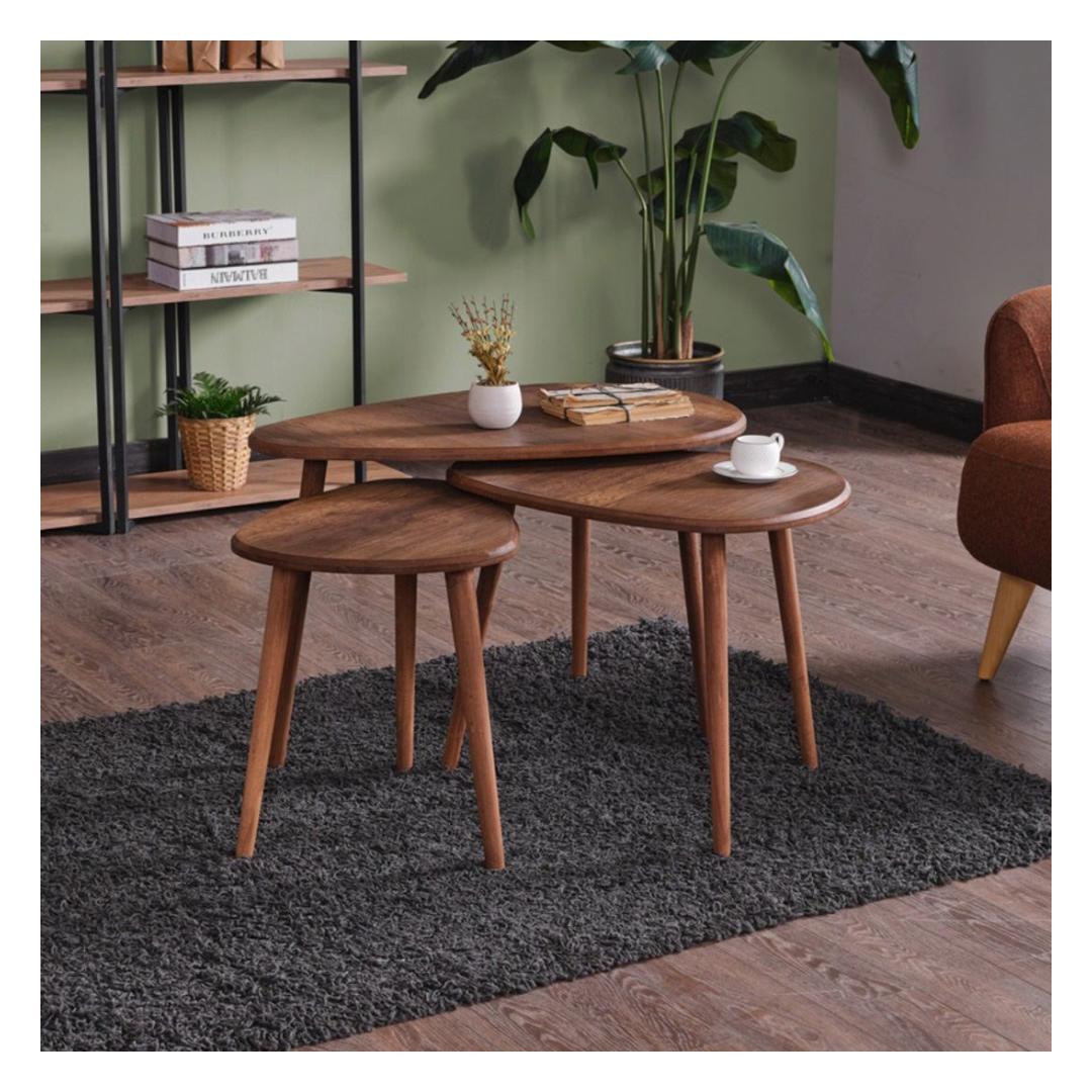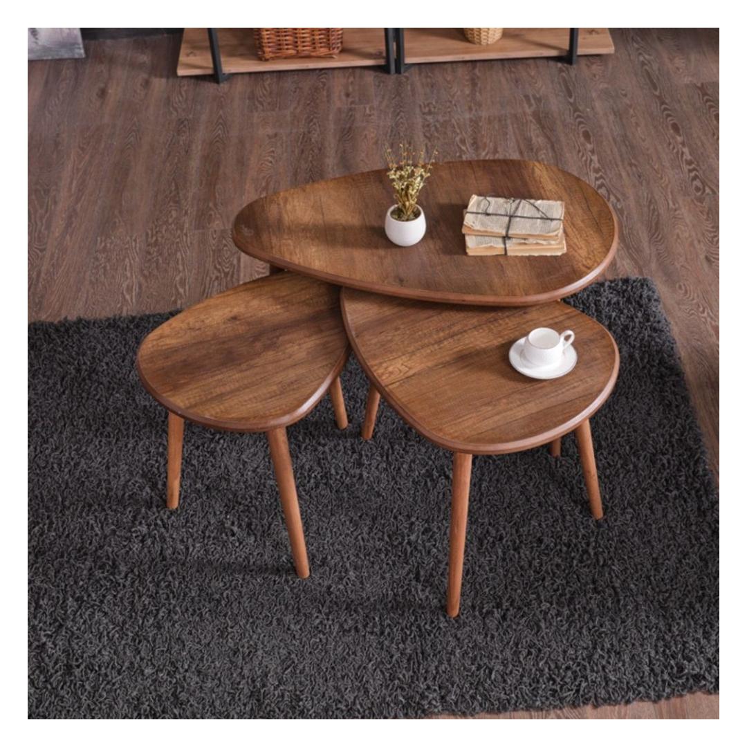 Muunna olohuoneesi viihtyisäksi ja tyylikkääksi oleskelutilaksi upealla sohvapöytäsarjalla. Tämä setti on valmistettu 100 % MDF-levystä ja Pinotex-pinnoitetuilla puujaloilla, ja se huokuu tyylikkyyttä ja hienostuneisuutta.Nosta tilasi arvoonNosta kotiasi ripauksella ylellisyyttä tämän upean sohvapöydän avulla. Runsas pähkinäpuun väri tuo lämpöä ja syvyyttä mihin tahansa huoneeseen, kun taas tyylikäs muotoilu täydentää mitä tahansa sisustusta.Toiminnallinen ja moderniTämä setti ei ole vain visuaalisesti houkutteleva, vaan tarjoaa myös runsaasti säilytystilaa välttämättömille tavaroille. Kolme eri kokoa mahdollistavat monipuolisen asettelun, halusitpa sitten luoda yhtenäisen ilmeen tai yhdistellä ja sovittaa yhteen eklektisempää tunnelmaa varten.Ylivertainen laatuTämä sohvapöydän setti on valmistettu 18 mm paksusta materiaalista, joten se on kestävä ja rakennettu kestämään. Jämäkkä rakenne takaa vakauden ja pitkäikäisyyden, joten voit nauttia tästä sarjasta vuosia.Päivitä olohuoneesi sohvapöytäsarjalla ja koe tyylin ja toiminnallisuuden täydellinen yhdistelmä. Tilaa omasi jo tänään ja vie kotisi sisustus uudelle tasolle.Tekniset tiedot:Materiaali:100 % MDFPaksuus:18 mmJalat:Pinotex-pinnoitetut puujalatKoot:Suuri:Leveys:80 cm,Korkeus:50 cm,Syvyys:52 cm (1 kpl)Keskikoko:Leveys:60 cm,Korkeus:45 cm,Syvyys:45 cm (1 kpl)Pieni:Leveys:50 cm,Korkeus:40 cm,Syvyys:38 cm (1 kpl)Väri:Pähkinä puu Väri: pähkinä