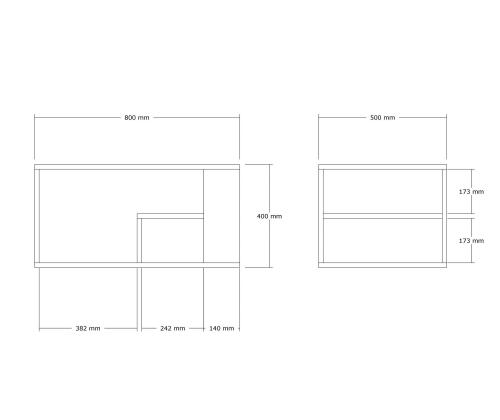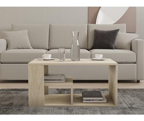 With a thickness of 18 mm and dimensions of 80 cm in width, 50 cm in height, and 40 cm in depth, this coffee table offers ample space for your coffee mugs, magazines, and other essentials. It also comes with additional storage and numerous shelves, allowing you to keep your living room organized and clutter-free.