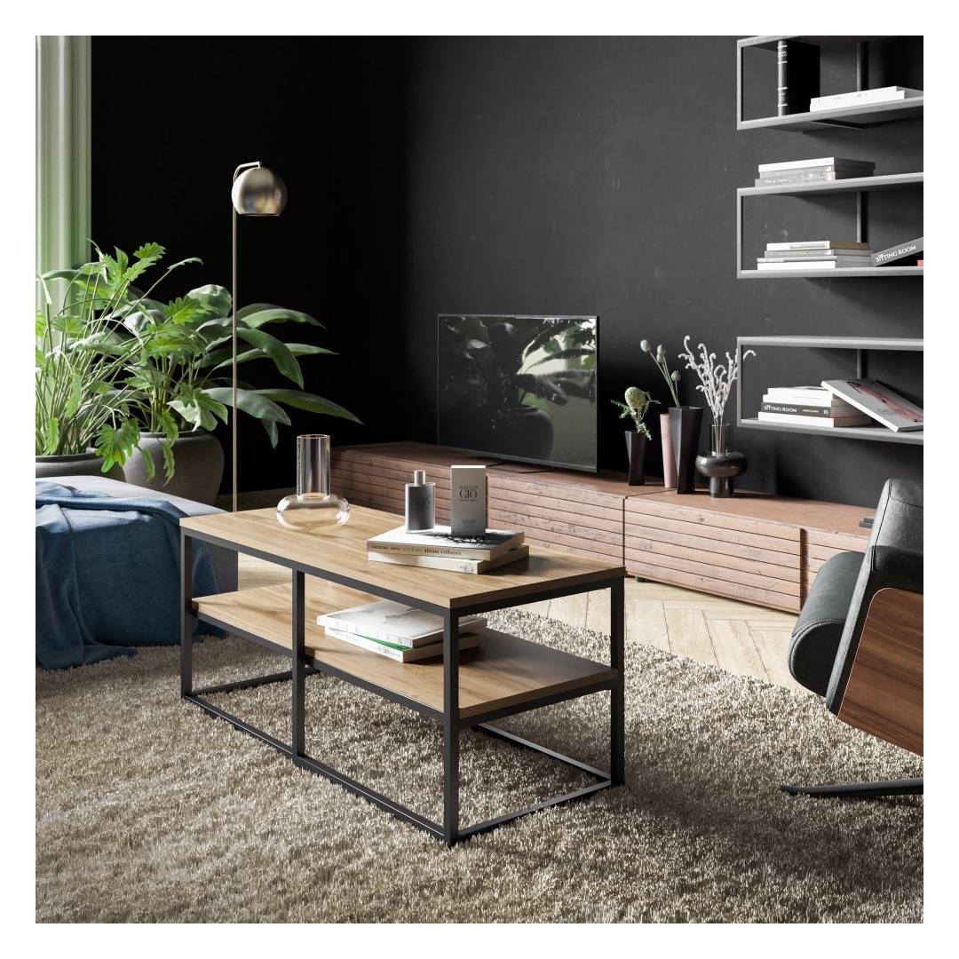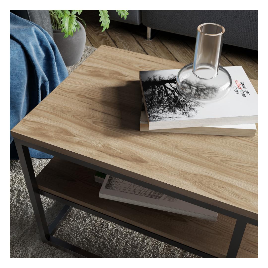 Muunna asuintilasi upealla teollisella sohvapöydälläLisää kotiisi hienostuneisuutta ja tyyliä teollisella sohvapöydällämme. Tässä sohvapöydässä on täydellinen sekoitus nykyaikaista muotoilua ja teollista charmia, ja siitä tulee varmasti olohuoneesi keskipiste. Korosta sisustustasi ainutlaatuisella materiaalisekoituksella. 100-prosenttisesti melamiinipinnoitetusta lastulevystä valmistettu sohvapöytä ei ole ainoastaan kestävä, vaan se kestää myös naarmuja, tahroja ja vesivahinkoja. 18 mm:n paksuus takaa vakauden ja pitkäikäisyyden, joten voit nauttia tästä huoneesta vuosien ajan. Metallijalat tuovat tyylikkään ja modernin lisän, joka täydentää täydellisesti teollista konseptia. Luo toiminnallinen ja järjestetty olohuoneTämän sohvapöydän leveys on 110. 4 cm, korkeus 47 cm ja syvyys 52 cm, joten siinä on runsaasti tilaa kaikille olohuoneen tarvikkeille. Hyllyn korkeus 16. 7 cm tarjoaa lisää säilytysmahdollisuuksia, jolloin voit pitää lehdet, kirjat tai työpöydät siististi järjestyksessä ja käden ulottuvilla. Täydentää sisustustasi ajattomalla väriyhdistelmälläTämän sohvapöydän pähkinäpuun ja mustan väriyhdistelmä lisää tyylikkyyttä ja hohtoa mihin tahansa sisustukseen. Runsas pähkinäpintaisuus lisää lämpöä ja syvyyttä, kun taas mustat korostukset antavat modernin ja särmikkään ilmeen. Tämä monipuolinen väriyhdistelmä sopii vaivattomasti monenlaisiin sisustustyyleihin, joten se on täydellinen lisä mihin tahansa kotiin. Tekniset tiedot: Tuotetyyppi: Leveys: 110. 4cmKorkeus: 47cmSyvyys: 52cmHyllyn korkeus: 16. 7cmVäri: pähkinäpuu ja musta Väri: Pähkinä Musta