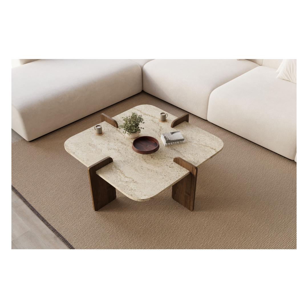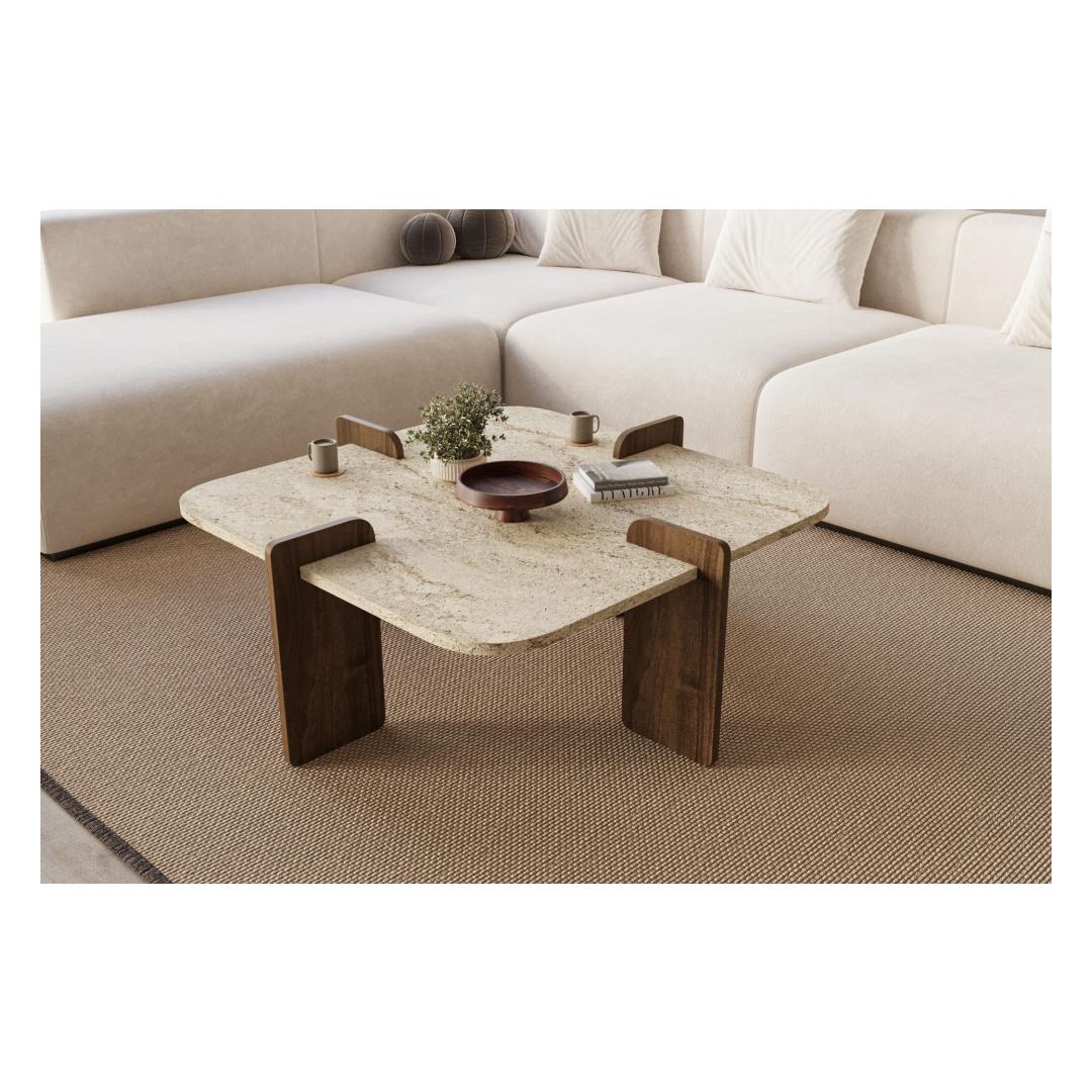 Sohvapöytä Poalla - Travertiini, pähkinäpuu