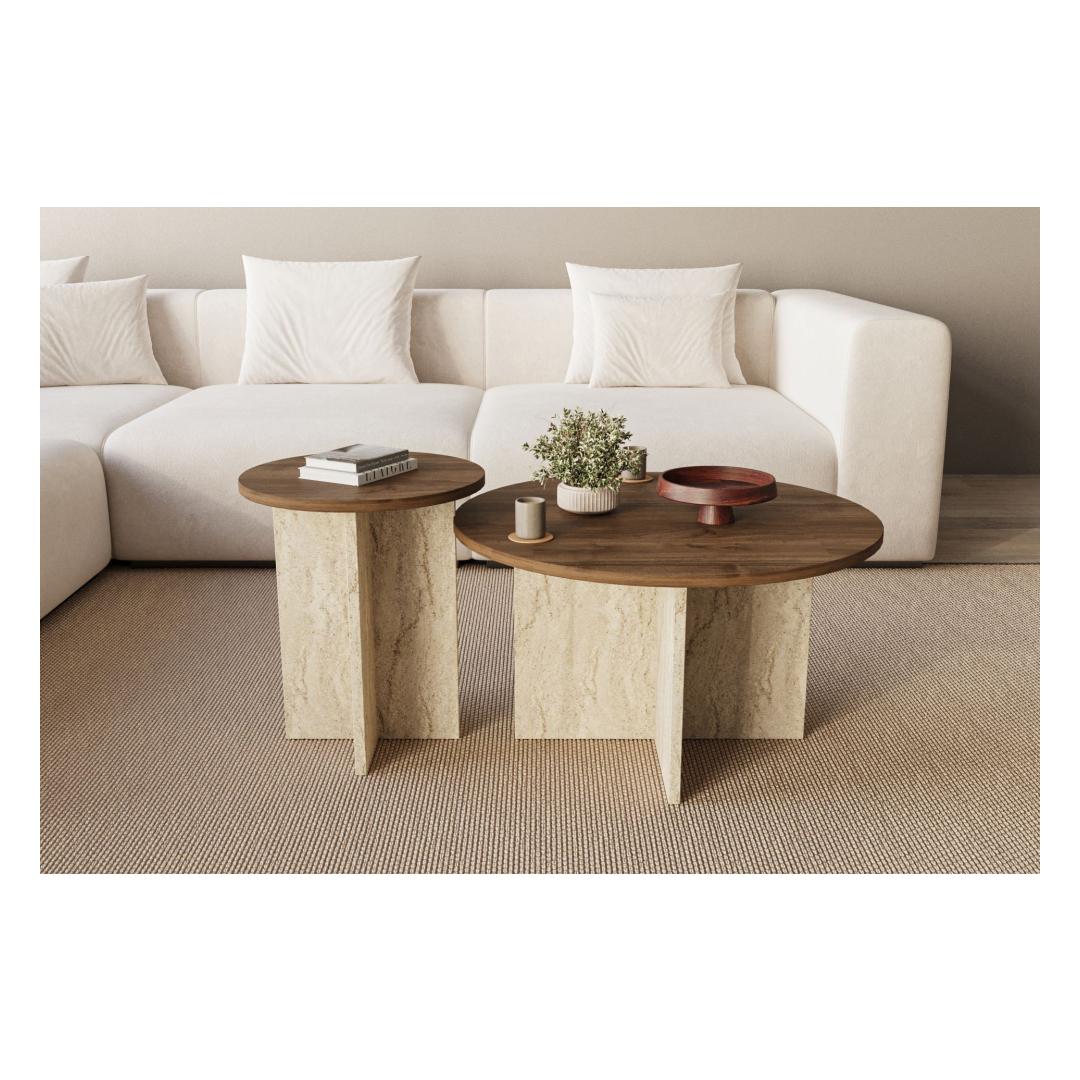 Sohvapöytä Private - Pähkinäpuu, Travertiini