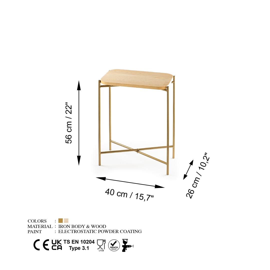 Paranna asuintilaasi tyylikkäällä ja tyylikkäällä sohvapöydälläKäännä olohuoneesi tyylikkääksi paratiisiksi ohuen sohvapöytämme avulla. Tämä huolella ja tarkkaavaisesti valmistettu upea kappale on suunniteltu parantamaan minkä tahansa huoneen tunnelmaa. Verraton tyylikkyys ja kestävyysSohvapöytämme on valmistettu 100-prosenttisesta puusta, joka ilmentää ajatonta kauneutta ja kestävyyttä. Sen tukeva metallirunko takaa vakauden ja pitkäikäisyyden, joten voit nauttia sen tyylikkyydestä vuosien ajan. Kullan ja luonnonvärien yhdistelmä tuo olohuoneeseesi runsautta ja lämpöä, mikä tekee siitä ihanteellisen kodin keskipisteen.Erittäin monipuolinen lisä mihin tahansa sisustukseenSohvapöytä täydentää tyylikkään ja minimalistisen muotoilunsa ansiosta vaivattomasti mitä tahansa sisustustyyliä. Olipa kotisi moderni, nykyaikainen tai perinteinen estetiikka, tämä monipuolinen kappale sulautuu saumattomasti olemassa olevaan sisustukseen ja lisää sen yleistä vetovoimaa. Toiminnallinen ja käytännöllinenSohvapöytäsi ei ilmaise vain eleganssia, vaan tarjoaa myös käytännöllisyyttä. Sen suuri pinta-ala tarjoaa runsaasti tilaa suosikkikirjojesi, -lehtien tai koriste-esineiden esillepanoon. Kokoontaitettava muotoilu mahdollistaa helpon kuljetuksen ja kokoamisen, joten se on kätevä valinta niille, jotka muuttavat usein tai siirtävät huonekalujaan. Tekniset tiedot: Materiaali: Materiaalia: Kylpyhuone, penkki, penkki, penkki, penkki, penkki, penkki, penkki: Materiaali: MetalliLeveys: 40 cmKorkeus: 56 cmSyvyys: 26 cmPaino: 2,118 kgVäri: Kulta ja LuonnonväriParanna asuintilasi tyylikkäällä sohvapöydällämme ja koe tyylin, toiminnallisuuden ja kestävyyden täydellinen yhdistelmä. Tilaa nyt ja hemmottele itseäsi ansaitsemallasi luksuksella. Väri: Gold Natural