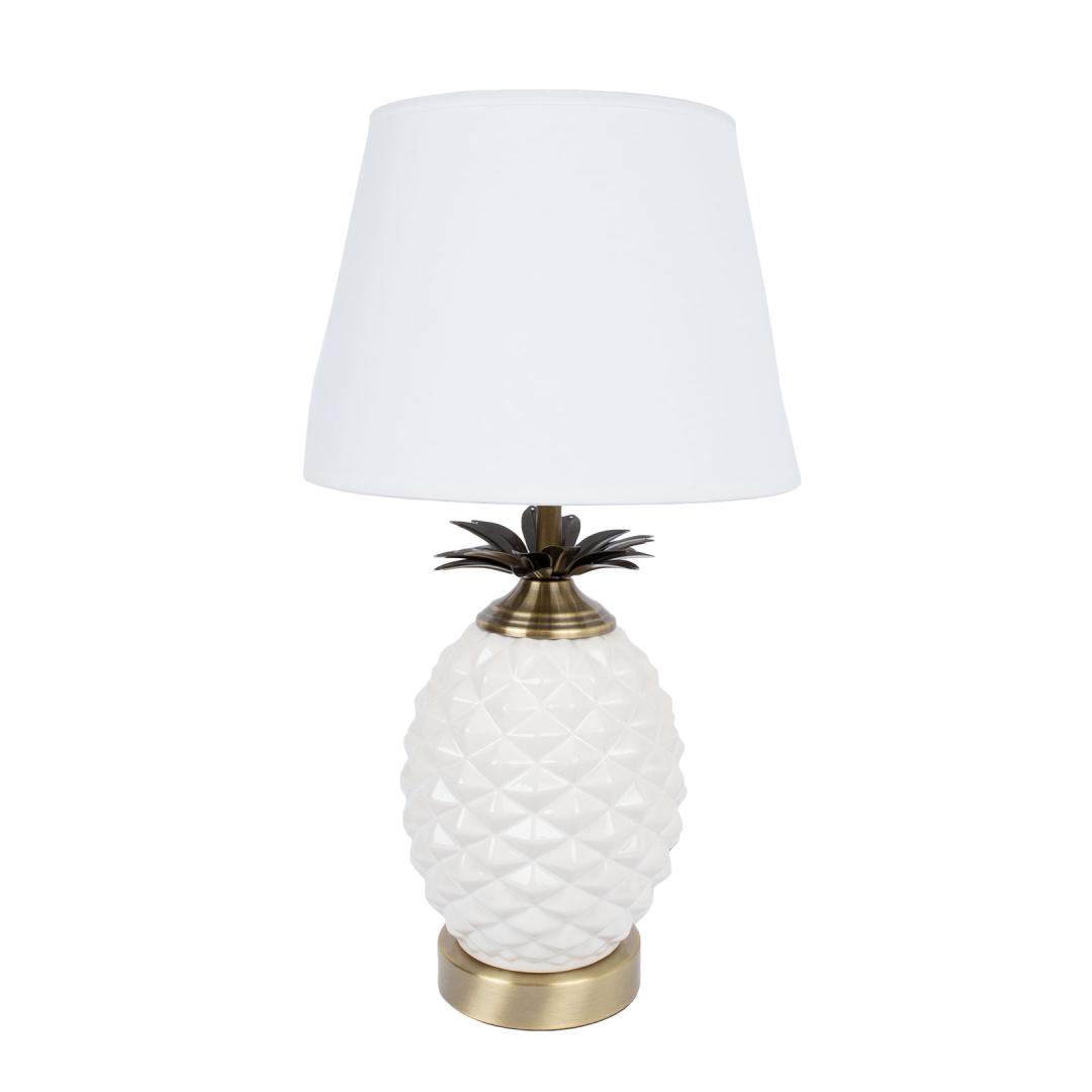 Pöytävalaisin ANANAS H45cm, kupu: valkoinen, jalka: valkoinen keramiikka