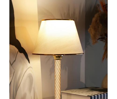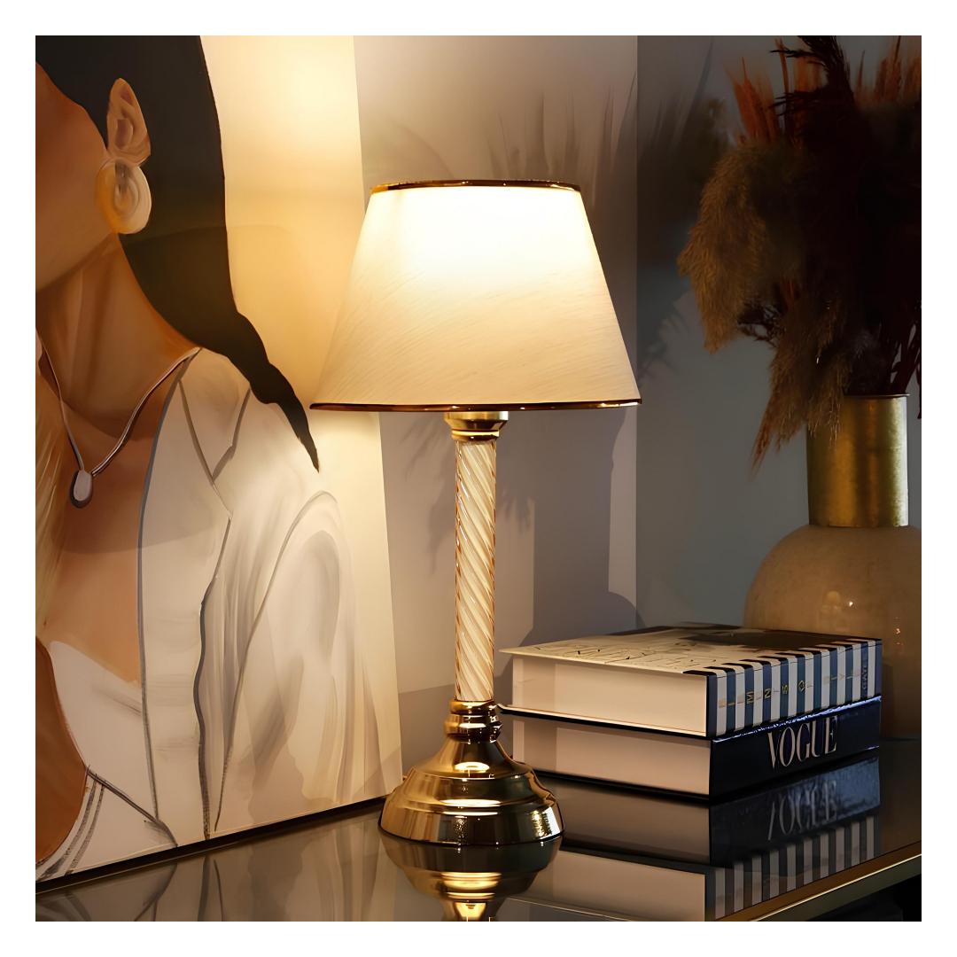 Illuminate your space with elegance and style with our stunning Table Lamp. The combination of the 100% plastic fabric cap and metal base creates a luxurious look that will elevate any room in your home. The beige and gold colors add a touch of glamour, making this lamp a statement piece in any decor.