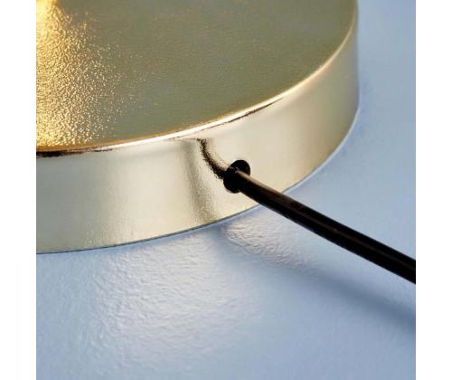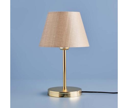 The sleek and modern design of this table lamp will instantly elevate the look of any room. The beige fabric shade paired with the gold metal frame creates a chic and stylish aesthetic that will complement any decor style.