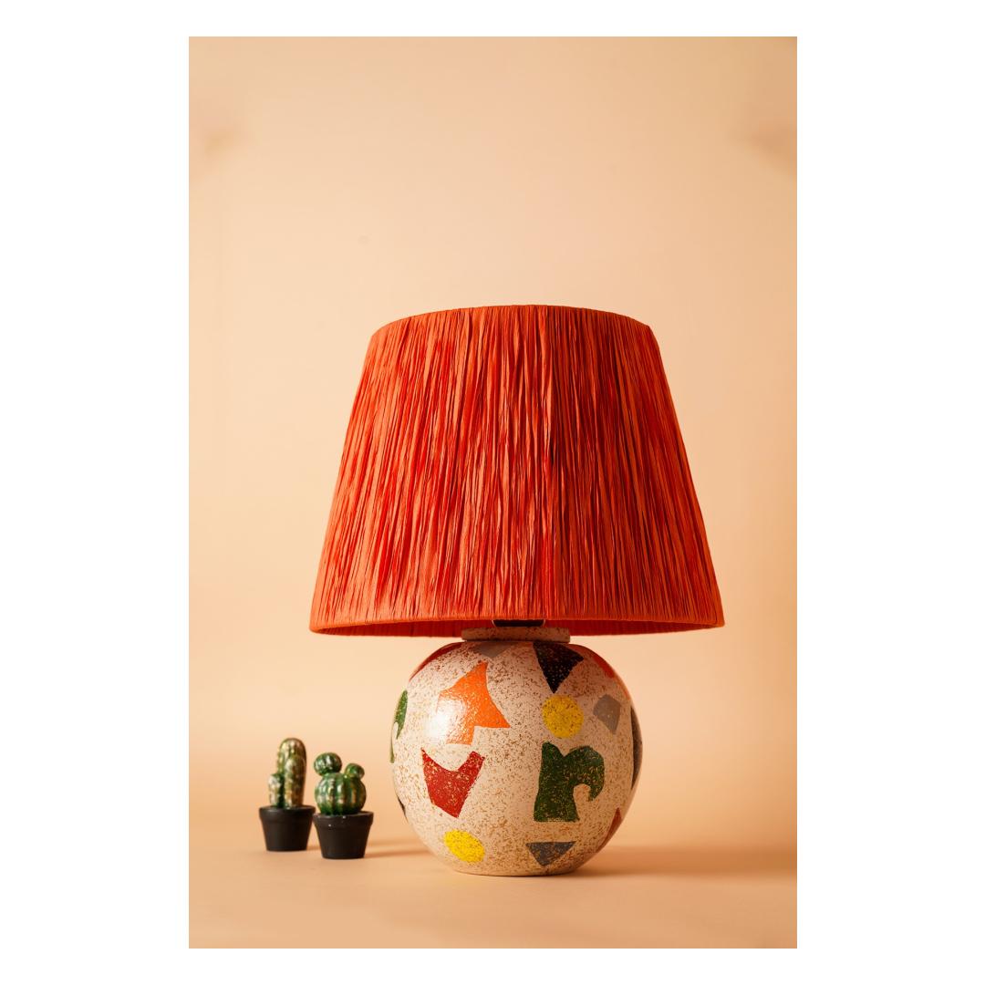 Illuminate your space with the warm and inviting glow of our Ceramic Table Lamp. This stunning piece features a unique ceramic body in a vibrant orange hue, adding a pop of color to any room. The rope cap detail adds a touch of rustic charm, making it the perfect addition to your home decor.