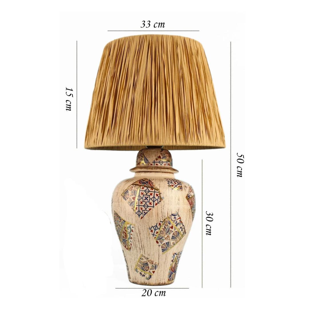 Illuminate your space with the warm and inviting glow of our Ceramic Table Lamp. This stunning piece features a beautifully crafted ceramic body that exudes elegance and sophistication. The raffia cap adds a touch of natural charm, making it the perfect addition to any room in your home.