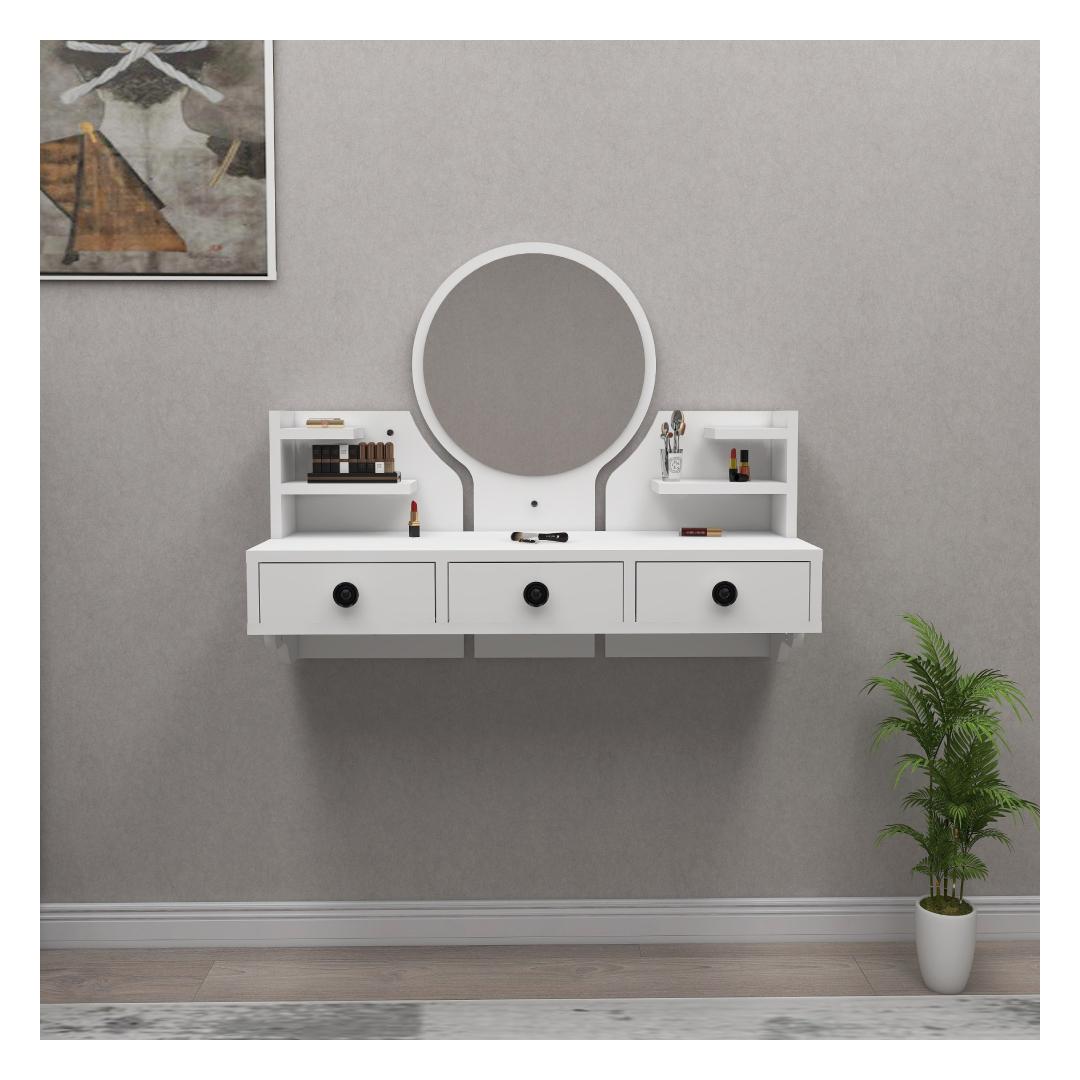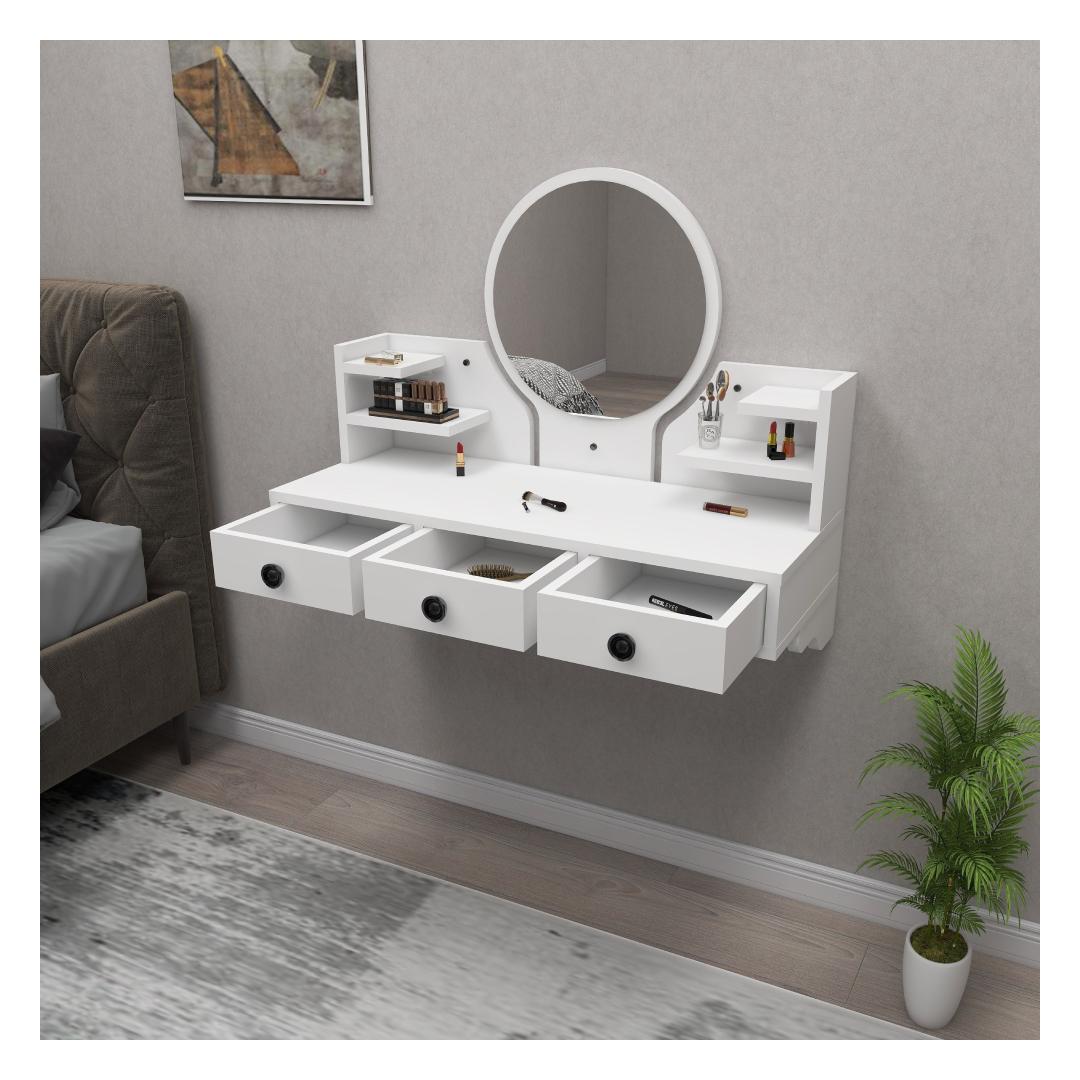 Muunna aamurutiinisi tyylikkäällä meikkipöydällämme Aloita päiväsi oikein upean meikkipöytämme avulla. Tämä pöytä on suunniteltu tuomaan eleganssia aamurutiineihisi, ja se on täydellinen lisä mihin tahansa makuuhuoneeseen tai vaatehuoneeseen. Tyylikkään ja modernin muotoilunsa ansiosta se kohottaa huoneesi tyyliä välittömästi. Valmistettu laatua ja kestävyyttä silmällä pitäenTämä meikkipöytä on valmistettu 100 % melamiinipinnoitetusta lastulevystä, joka takaa pitkäaikaisen kestävyyden ja kestää naarmuja ja tahroja. 18 mm:n paksuus lisää sen kestävyyttä, ja se tarjoaa vakaan pinnan kaikille kauneudenhoitotarpeillesi. Meikkipöydän korkeus on 75 cm, leveys 90 cm ja syvyys 36,8 cm, joten siinä on runsaasti tilaa kosmetiikalle, siveltimille ja tarvikkeille. Tilava pöytälevy antaa sinulle runsaasti tilaa levittäytyä ja valmistautua, ja sisäänrakennetut laatikot tarjoavat kätevää säilytystilaa välttämättömille tarvikkeillesi. Ajaton lisä kotiisiEsimerkkipöytä on suunniteltu klassisen valkoiseksi, joka tuo ajattoman ja tyylikkään lisän mihin tahansa huoneeseen. Olipa sisustuksesi sitten moderni tai perinteinen, tämä pöytä sulautuu saumattomasti ja täydentää huoneesi yleistä estetiikkaa. Tekniset tiedot:Materiaali:Materiaali:Materiaali:Materiaali:Materiaali:Materiaali:Materiaali:Materiaali:Materiaali:Materiaali:Materiaali:Materiaali:100% melamiinipinnoitettua lastulevyäPaksuus:18mmKoko:Korkeus:75cm,Leveys:90cm,Syvyys:36.8cm.Väri:ValkoinenErikoispiirteet:Sisäänrakennetut vetolaatikot säilytystä varten.Muunna aamuiset rutiinisi ja luo kaunis ja järjestäytynyt tila meikkipöydällämme. Älä tyydy kauneusrutiinissasi vähempään kuin täydellisyyteen. Tilaa nyt ja koe ero itse! Väri: valkoinen
