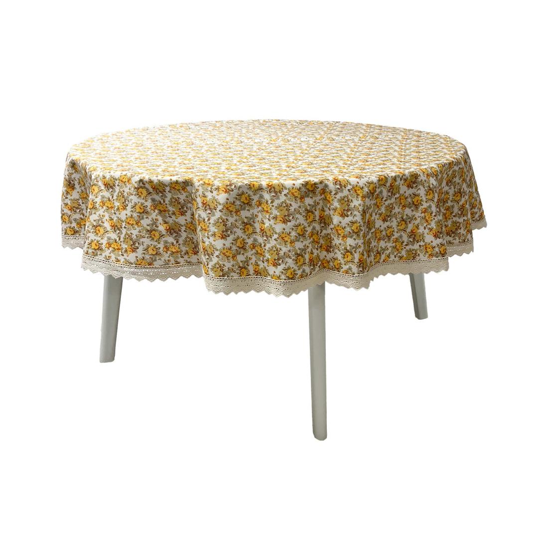 Pöytäliina LONETA UUSI pitsillä, D170cm, beige ruusu, 50% polyesteri, 50% puuvilla, kangas 476