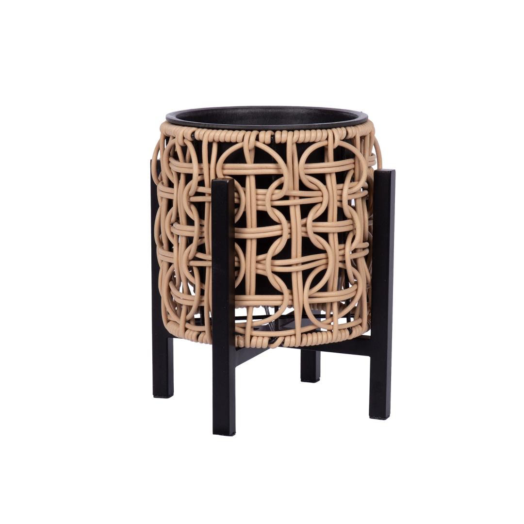 Kukkaruukku WICKER metallijalustalla 20 x 20 x K23 cm, vaaleanruskea.