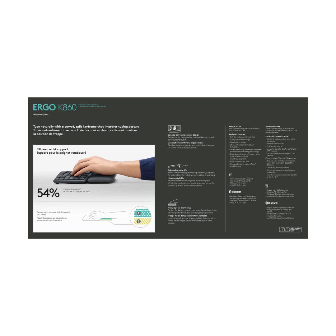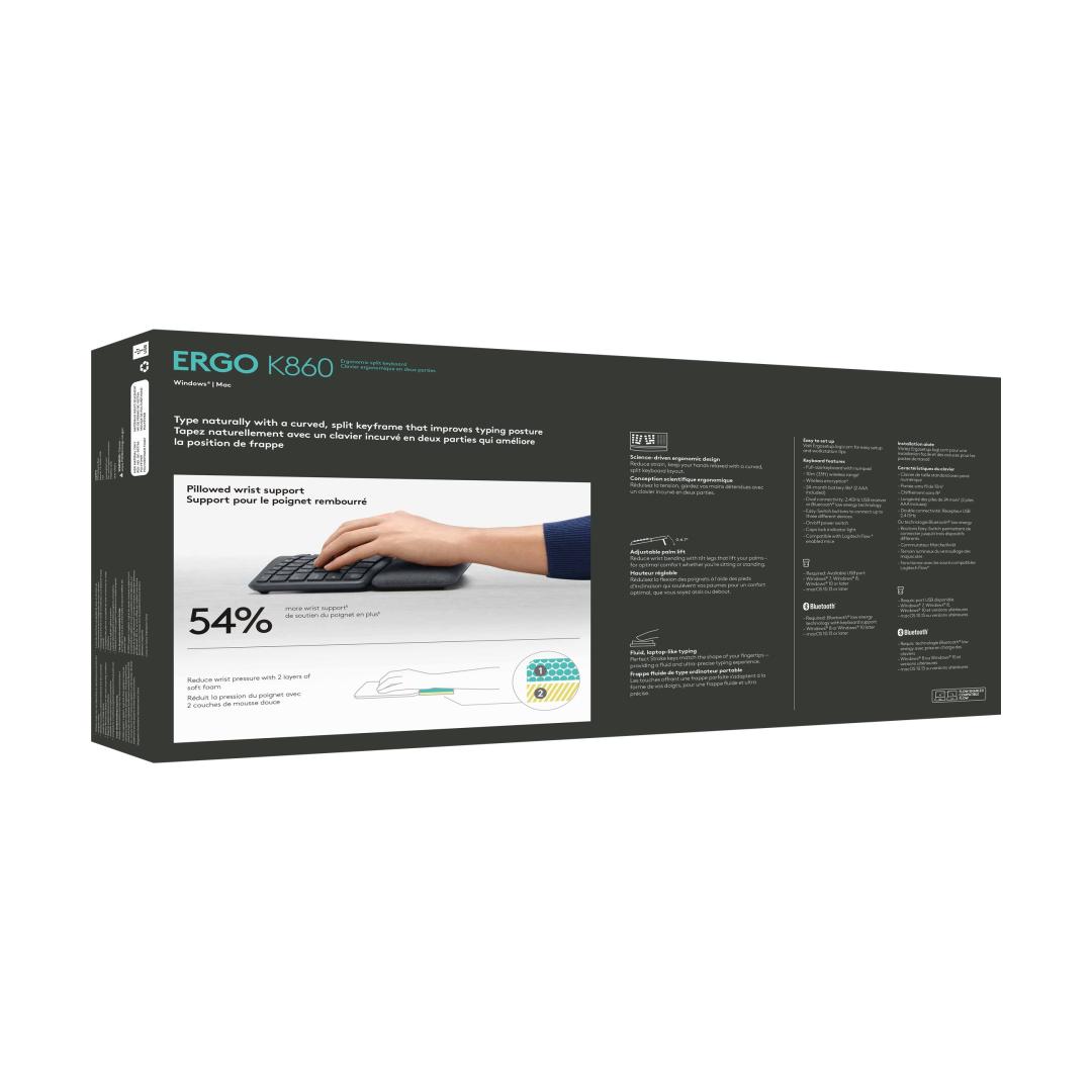 LOGITECH ERGO K860 Näppäimistö langaton 2,4 GHz Bluetooth 5.0 Nordic (PAN)