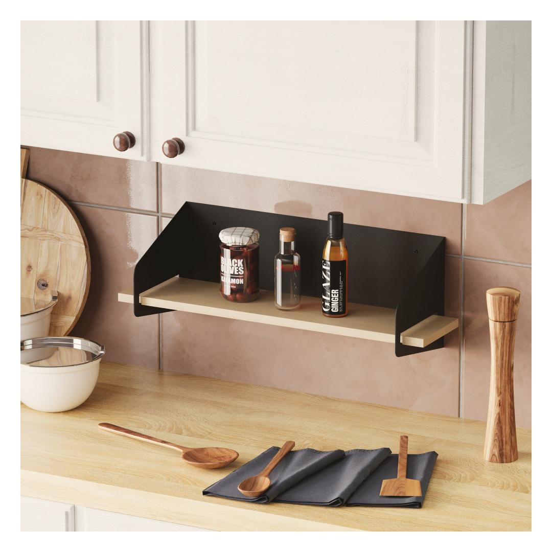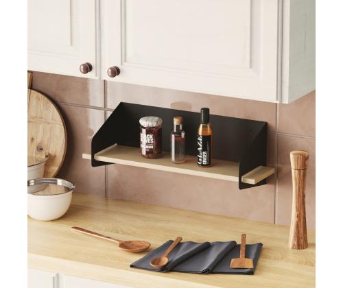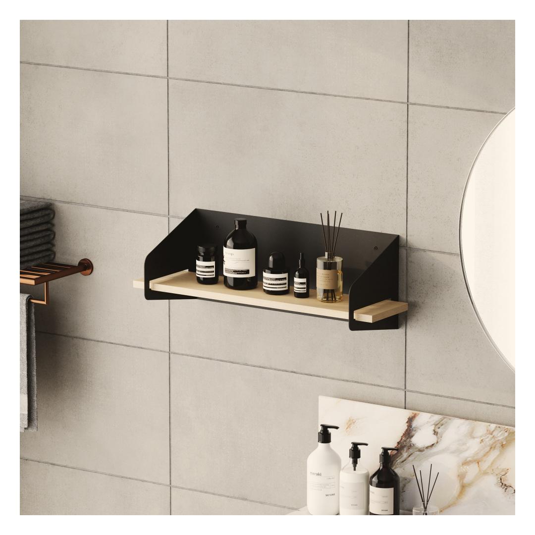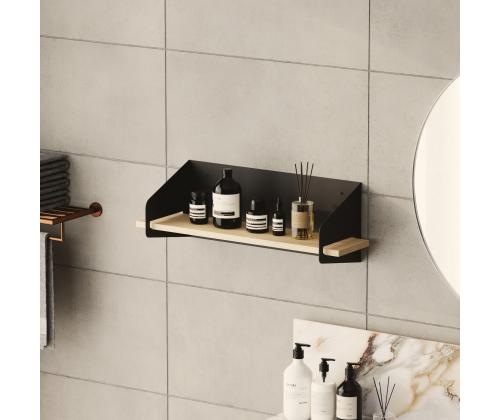 Transform your living space with our stunning wooden wall shelf. Made from 100% high-quality wood, this shelf exudes elegance and sophistication. The sleek black metal frame adds a modern touch, making it the perfect addition to any room in your home.