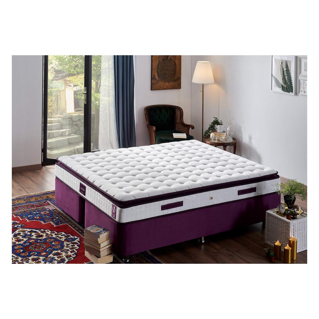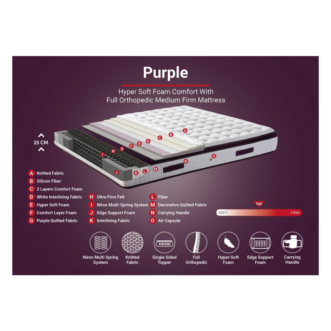 The attention to detail is evident in every aspect of our mattress. The knitted fabric cover adds a touch of elegance, while the decorative quilted linen fabric enhances the overall aesthetic appeal. The combination of white and purple colors exudes sophistication and adds a pop of vibrancy to any bedroom decor.
