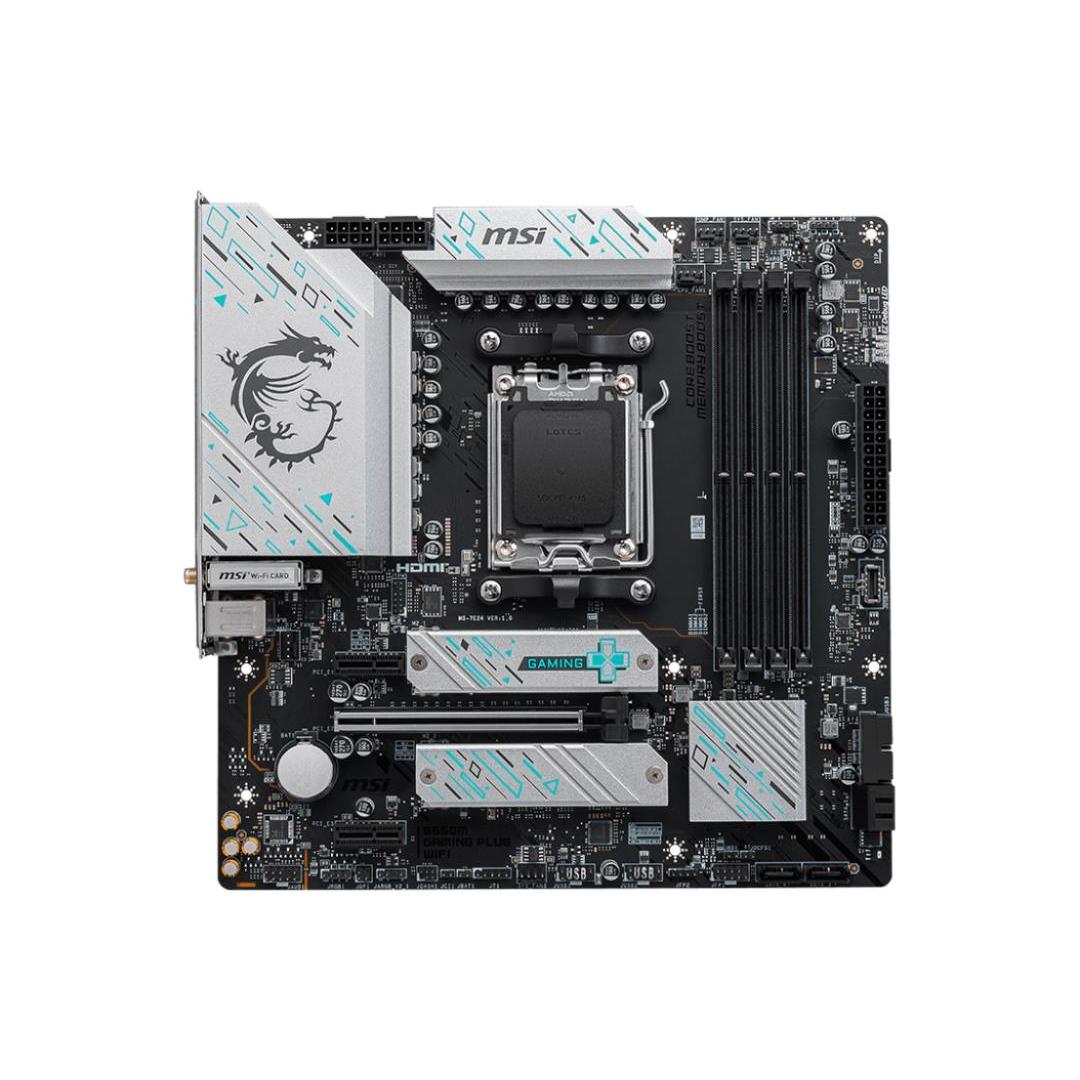 B650M GAMING PLUS WIFI on suunniteltu tonneittain liitettävyyttä, joustavia työkaluja ja kätevä Wi-Fi-ratkaisu DDR5-muistiversiolla pelaajille, jotka haluavat kaiken.