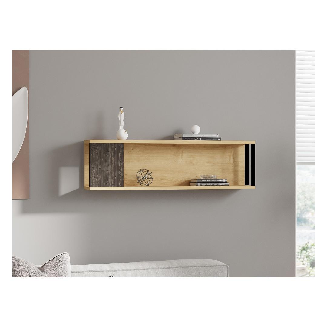 Crafted from 100% melamine coated particle board, this wall shelf is built to last. The 18mm thickness ensures sturdiness and durability, allowing you to display your favorite items with confidence. The shelf is also coated with Atlantic Pine and Anthracite colors, giving it a sleek and elegant look that complements any decor.