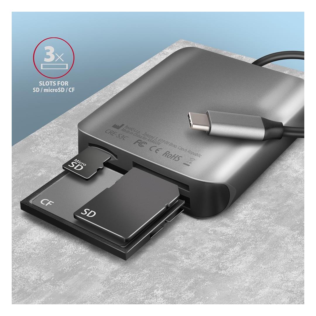 MUISTINLUKIJA USB-C 3-SLOT/SD/MICROSD/CF CRE-S3C AXAGON