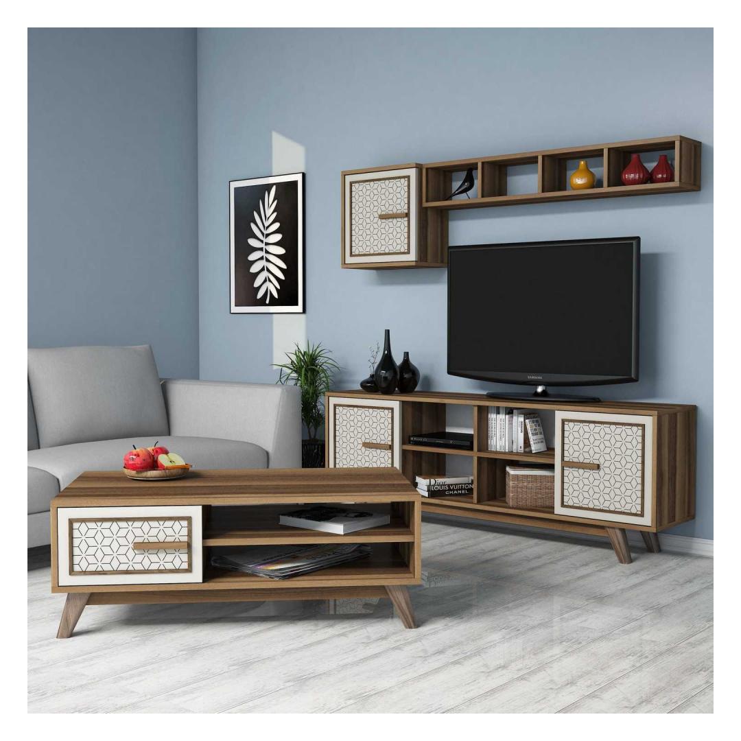 Living Room Furniture Set Ayla - Walnut, Cream