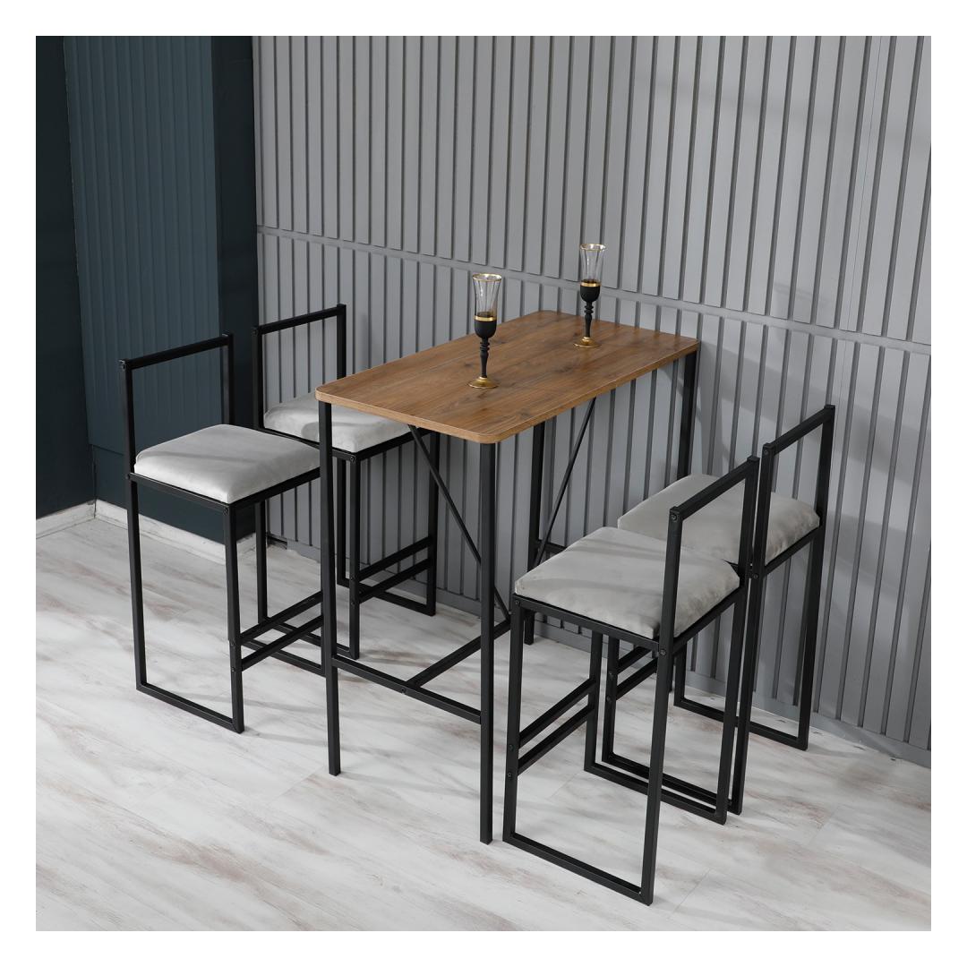 Muunna tilasi tyylikkääksi ja kutsuvaksi kokoustilaksi 5-osaisella baaripöytä- ja tuolisarjalla. Tämä setti ei ole pelkkä huonekalu, vaan statement-osa, joka kohottaa kotisi ilmettä ja luo viihtyisän ilmapiirin, jossa voit viettää aikaa ystävien ja vieraiden kanssa.Kohota tilasi Sanotaan hyvästit tylsille ja vanhentuneille huonekaluille ja hei modernille ja tyylikkäälle baaripöytä- ja tuolikokonaisuudelle, joka kohottaa tilasi välittömästi. Kerman, pähkinäpuun ja mustan yhdistelmä luo hienostuneen ja nykyaikaisen ilmeen, joka tekee vaikutuksen kaikkiin, jotka astuvat kotiisi.Viihdytä tyylilläOlitpa sitten isännöimässä illalliskutsuja tai vain nauttimassa rentoa drinkkiä ystävien kanssa, tämä baaripöytä- ja tuolisarja on täydellinen lisä kotiisi. Tukeva metallirunko ja melamiinipinnoitetut lastulevytasot takaavat kestävyyden ja pitkäikäisyyden, joten voit nauttia tästä sarjasta vuosia.Tee muistojaAjatella muistoja, joita luot tämän kauniin baaripöydän äärellä rakkaidesi kanssa. Intiimeistä keskusteluista vilkkaisiin juhliin, tämä setti on täydellinen tausta kaikille elämän erityishetkille.Tekniset tiedot:Materiaali:100 % melamiinipinnoitettu lastulevyRunko:100 % metalliTiskipöydän mitat:Leveys:90 cm, Korkeus:92 cm, Syvyys:45 cmTiskituolien mitat:Leveys:35 cm, Korkeus:84 cm, Syvyys:35 cm (4 kpl)Väri:Kermanvärinen, pähkinäpuu, musta Väri: Cream Walnut Black