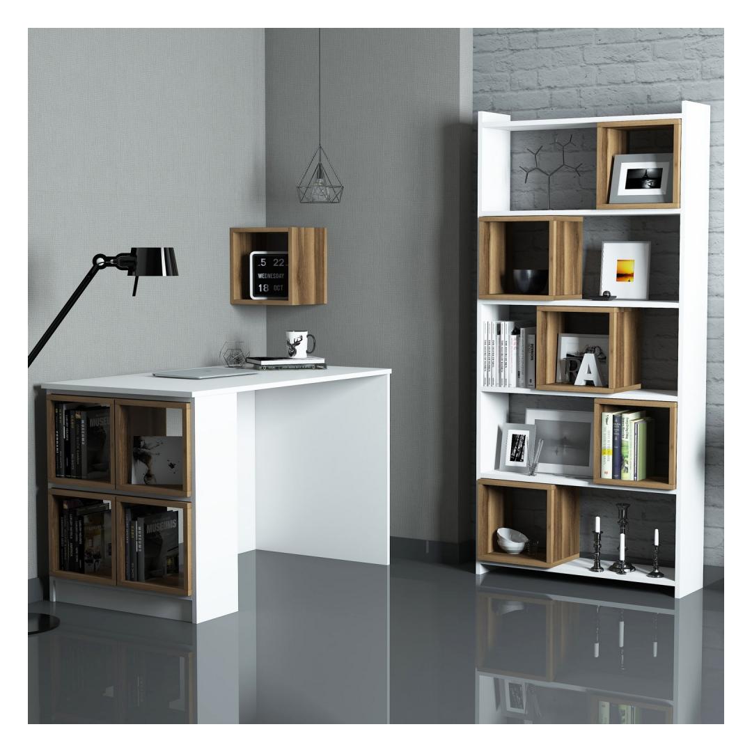 Study Desk & Bookshelf Box - White, Walnut