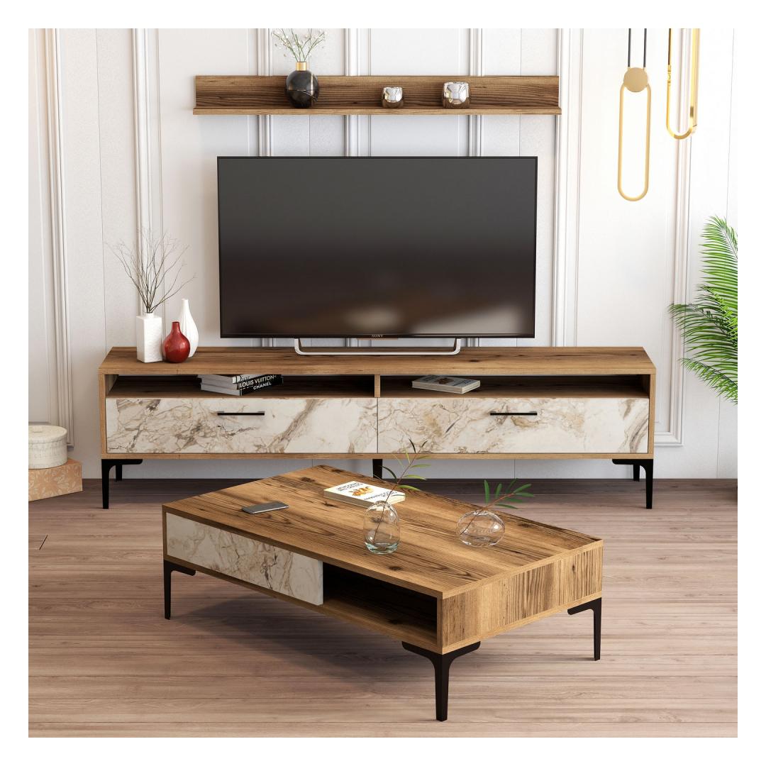 Living Room Furniture Set Istanbul - Walnut, White Marble