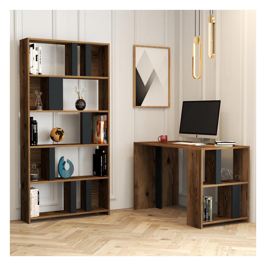 Muutke oma tööruum täiuslikuks stiili ja funktsionaalsuse kombinatsiooniksTutvustame meie töölauda ja raamaturiiulit, mis on kohustuslik täiendus igasse moodsasse õpperuumi või kodukontorisse. See uuenduslik mööbel on loodud selleks, et suurendada teie produktiivsust, lisades samal ajal teie ruumi elegantsi. Looge inspireeriv tööruumMeie stiilse ja kaasaegse disainiga töölaud ja raamaturiiul on ideaalne valik neile, kes otsivad stiilset ja samas funktsionaalset tööruumi. Pähklipuu ja antratsiidi värvide kombinatsioon lisab igasse ruumi elegantsust, muutes selle väljapaistvaks esemeks, mis täiendab mis tahes sisekujundust. Rikkalik panipaik kõigile olulistele asjadeleSee arvukate riiulitega kirjutuslaua ja raamaturiiuli kombinatsioon pakub piisavalt ruumi kõigi teie raamatute, kirjatarvete ja muude õppetööks vajalike esemete jaoks. Ütle hüvasti segastele kirjutuslaudadele ja korrastamata raamaturiiulitele ning tere tulemast hästi organiseeritud ja inspireerivale tööruumile. Maksimeerida oma ruumi seinale kinnitamise võimalusegaMeie õppelaua ja raamaturiiuli saab hõlpsasti seinale kinnitada, mis võimaldab teil maksimeerida oma põrandapinda. See funktsioon on eriti kasulik neile, kelle ruumi suurus on piiratud, sest see loob avatuse tunde ja muudab teie õpperuumi avaramaks. Tehnilised üksikasjad:Toote tüüp: Toode on mõeldud paigaldamiseks ja paigaldamiseks: Töölaud ja raamaturiiulMaterjal: Materjal: Materjal: Materjal: Materjal: Materjal: Materjal: Materjal: materjal: 100% melamiiniga kaetud puitlaastplaatPaksus: 18 mmTöölaua suurus: Laius: 120 cm, kõrgus: 75. 4 cm, sügavus: 60 cmRaamaturiiuli suurus: Laius: 90 cm, kõrgus: 180 cm, sügavus: 20 cmVärv: Pähkelpuu ja antratsiitKontseptsioon: Moodne - uudsusElustage oma tööruum meie töölaua ja raamaturiiuliga. Kogege täiuslikku segu stiilist, funktsionaalsusest ja organiseerimisest. Tellige kohe ja viige oma tootlikkus uutesse kõrgustesse! Värv: Walnut Anthracite