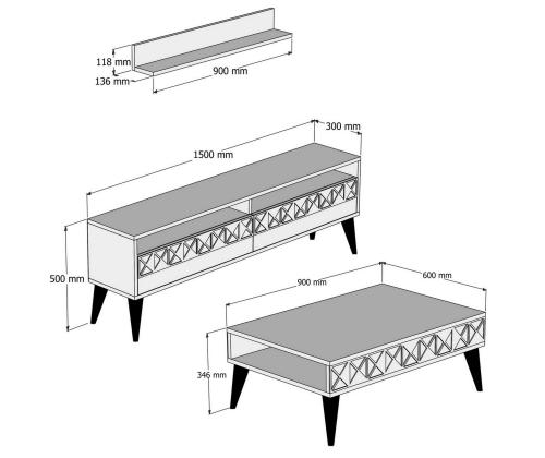 - TV Stand Size: Width: 150 cm, Height: 50 cm, Depth: 30 cm