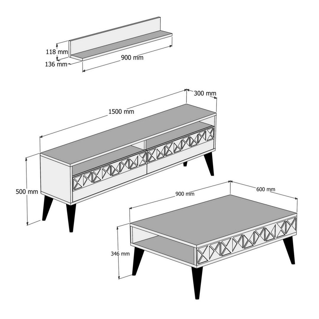 - TV Stand Size: Width: 150 cm, Height: 50 cm, Depth: 30 cm