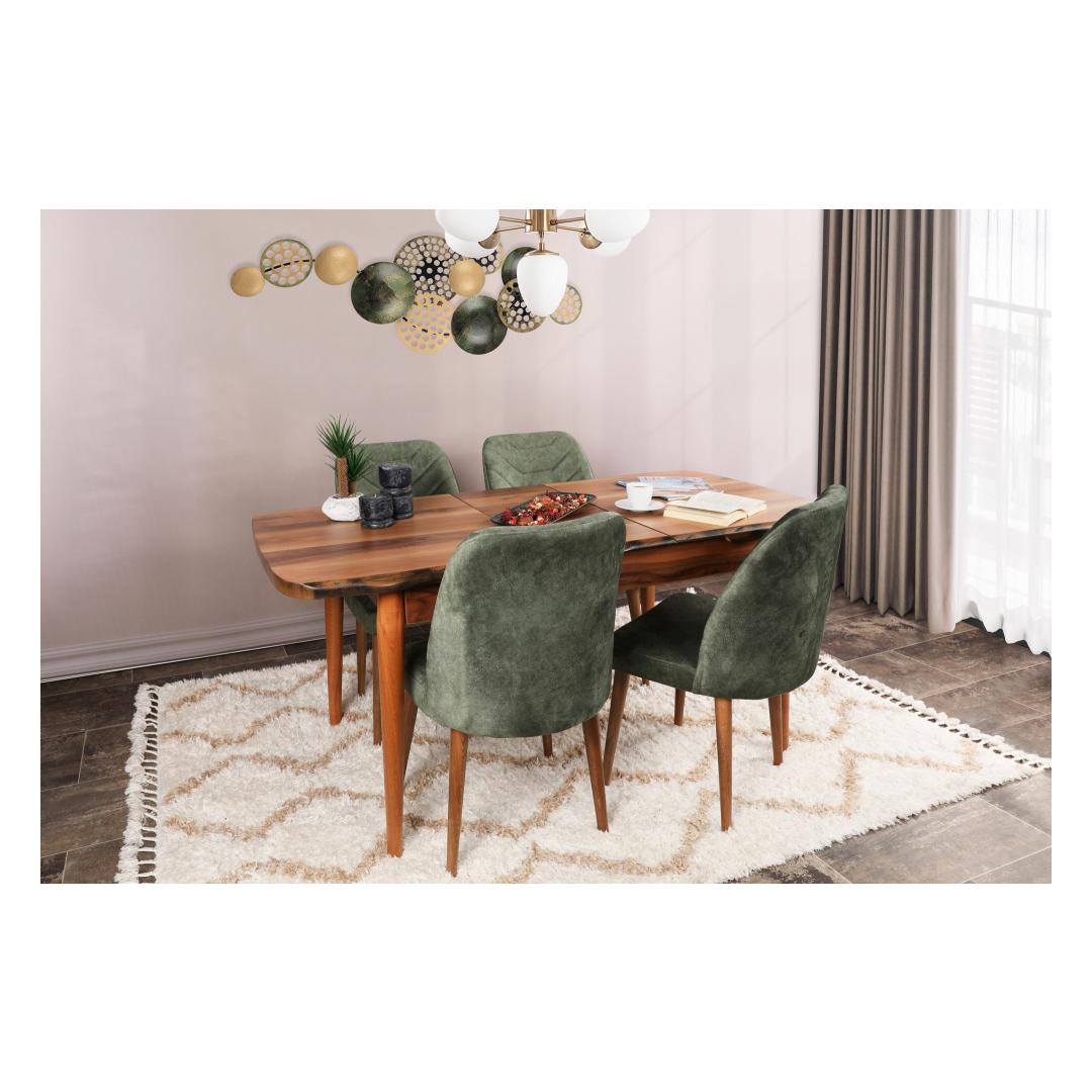 Koge boheemlaslikku võlu meie toolide komplektigaMuutke oma eluruum boheemlaslikuks oaasiks meie peenikese toolikomplektiga. See komplekt on valmistatud ülima hoole ja tähelepanelikkusega, et tuua teie koju elegantsi ja mugavust. Mugavus ja stiil100% sametkangast istmed pakuvad luksuslikku ja pehmet tunnet, mis võimaldab teil pärast pikka päeva lõõgastuda. Pehmed padjad pakuvad optimaalset tuge, tagades mugava istumise tundide kaupa. Boheemlaslikust inspireeritud disain lisab igasse ruumi ainulaadse ja kunstilise nüansi, muutes selle ideaalseks täienduseks teie kodu sisustusele.Võrratu vastupidavus ja tugevusMeie toolikomplekti raam on valmistatud 100% metallist, mis tagab erakordse vastupidavuse ja pikaajalise toimivuse. Sarvepuust jalad ei lisa mitte ainult loomulikku ja maalähedast võlu, vaid pakuvad ka tugevat tuge. 160 kg kandevõimega on need toolid ehitatud nii, et nad peavad vastu. Esteetiline välimus pähklipuust ja tumerohelises toonisPähklipuu ja tumerohelise värvi kombinatsioon loob visuaalselt uimastava kontrasti, mis lisab teie ruumile rafineeritust. Olenemata sellest, kas paigutate need toolid oma elutuppa, söögituppa või magamistuppa, tõstavad need toolid vaevata atmosfääri ja annavad julgelt märku. Tehnilised üksikasjad:Raam: 100% metallist, mis tagab erakordse vastupidavuseIste: 100% sametkangas, mis tagab luksusliku tunde.Jalad: Sarvepuust tugevat tuge andev puit.Laius: 50 cm, kõrgus: 90 cm, sügavus: 49 cm (2 tk)Kandevõime: 160 kgVärv: Pähklipuu ja tumerohelineHellitage boheemlaslikku võlu ja looge meie toolikomplektiga ruum, mis peegeldab teie unikaalset stiili. Kogege mugavust, vastupidavust ja esteetilisust nagu kunagi varem. Tellige kohe ja laske boheemlaslikul vaimul oma kodu läbi imbuda. Värv: Walnut Dark Green