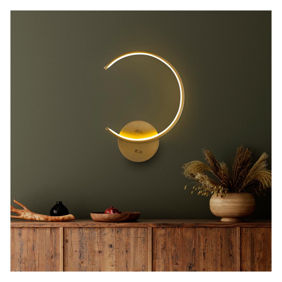Valaise tilasi tyylikkäästi ja tyylikkäästi Esittelemällä hienovarainen seinävalaisimemme, joka on suunniteltu lisäämään eleganttia tunnelmaa mihin tahansa huoneeseen. Metallirunko ja upea kultainen viimeistely tekevät tästä valaisimesta todellisen mestariteoksen, joka parantaa huoneesi tunnelmaa. Luo lämmin ja kutsuva tunnelmaTämä seinävalaisin säteilee pehmeää ja lämmintä hehkua integroidun LED-lamppukannan ansiosta luoden kodikkaan ja kutsuvan tunnelman. Halusitpa sitten rentoutua pitkän päivän jälkeen tai viihdyttää vieraita, tämä valaisin luo täydellisen tunnelman mihin tahansa tilaisuuteen.Täydennä sisustustasi ajattomalla muotoilullaTämä tyylikäs ja moderni seinävalaisin sopii saumattomasti mihin tahansa sisustustyyliin, nykyaikaisesta perinteiseen. Sen kompakti koko ja tyylikäs muoto tekevät siitä monipuolisen valinnan mihin tahansa huoneeseen, olipa kyseessä olohuone, makuuhuone tai eteinen. Luotettavuus ja toiminnallisuus yhdistyvätTämä metallisella pohjalevyllä valmistettu valaisin takaa kestävyyden ja vakauden vuosien luotettavaa käyttöä varten. Pohjalevyn halkaisija on 10 cm ja syvyys 3 cm, joten se takaa turvallisen ja tukevan asennuksen, joka antaa sinulle mielenrauhan. Tekniset tiedot:Kultaviimeistelty metallirunko antaa ylellisen kosketuksenLeveys: 33 cm, Korkeus: 46 cm, Syvyys: 6 cm.Pohjalevyn halkaisija: 10 cm, Pohjalevyn syvyys: 3 cmIP20-luokitus suojaa pölyltä ja pieniltä esineiltäLampun pistorasiatyyppi. Lisää seinävalaisimemme ostoskoriin jo tänään ja tee kodistasi lämmön ja kauneuden paratiisi. Väri: Kulta