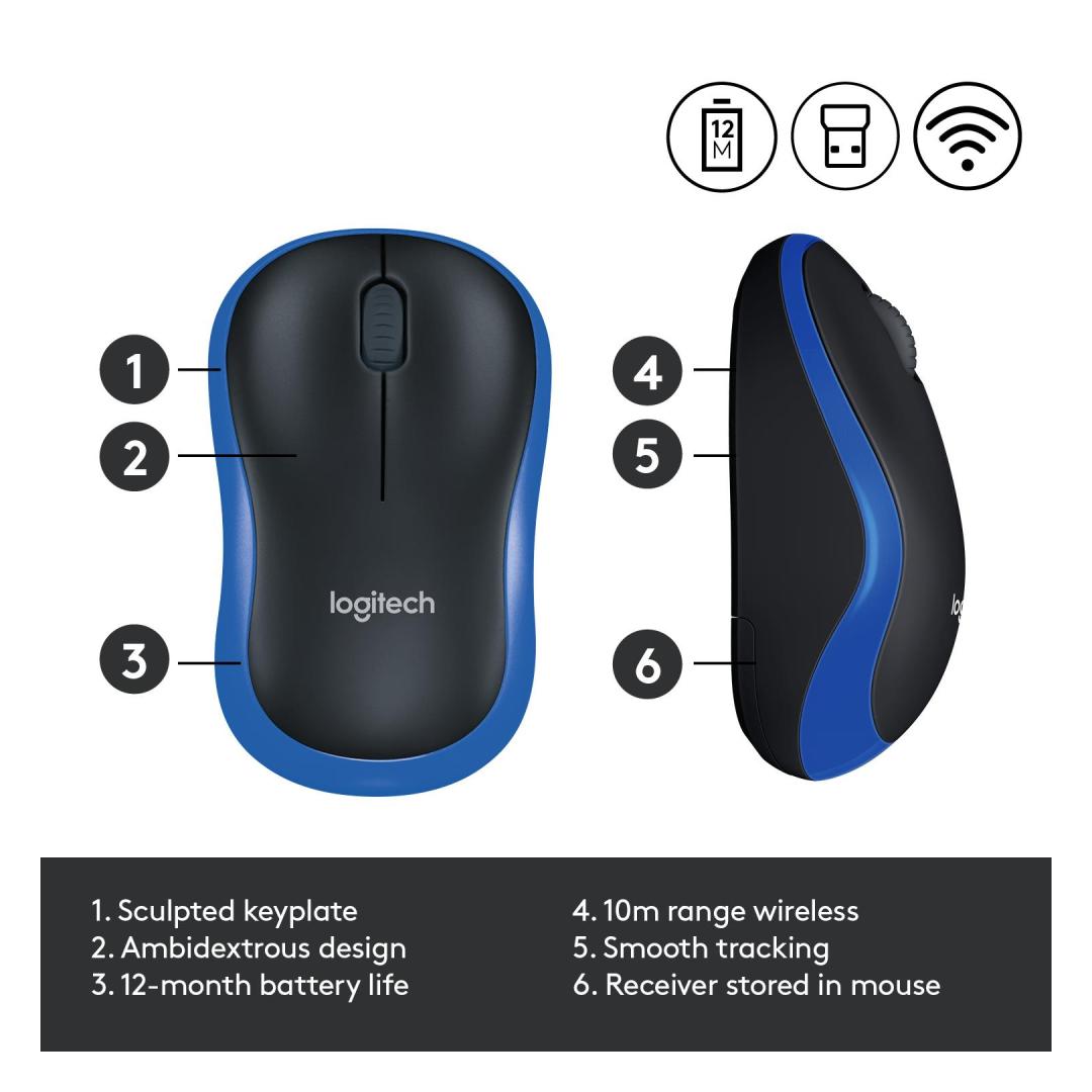 HIIRI USB OPTINEN WRL M185/SININEN 910-002239 LOGITEC