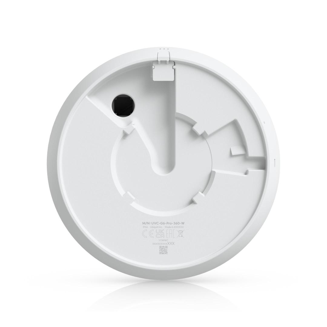 Ubiquiti G6 Pro 360. Type: IP security camera, Placement supported: Indoor & outdoor, Connectivity technology: Wired. Mounting type: Ceiling/wall, Product colour: White, Form factor: Dome. Lens viewing angle, horizontal: 180°, Lens viewing angle, vertical: 180°, Lens viewing angle, diagonal: 180°. Optical sensor size: 25.4 / 1.6 mm (1 / 1.6"). Night vision distance: 15 m, LED type: IR