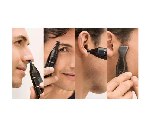 The Philips nose trimmer series 5000 gently trims nose, ear, eyebrow and detail hair. The new PrecisionTrim technology and the Protective Guard system have been designed to ensure an easy and efficient trim without all the pulling and tugging.