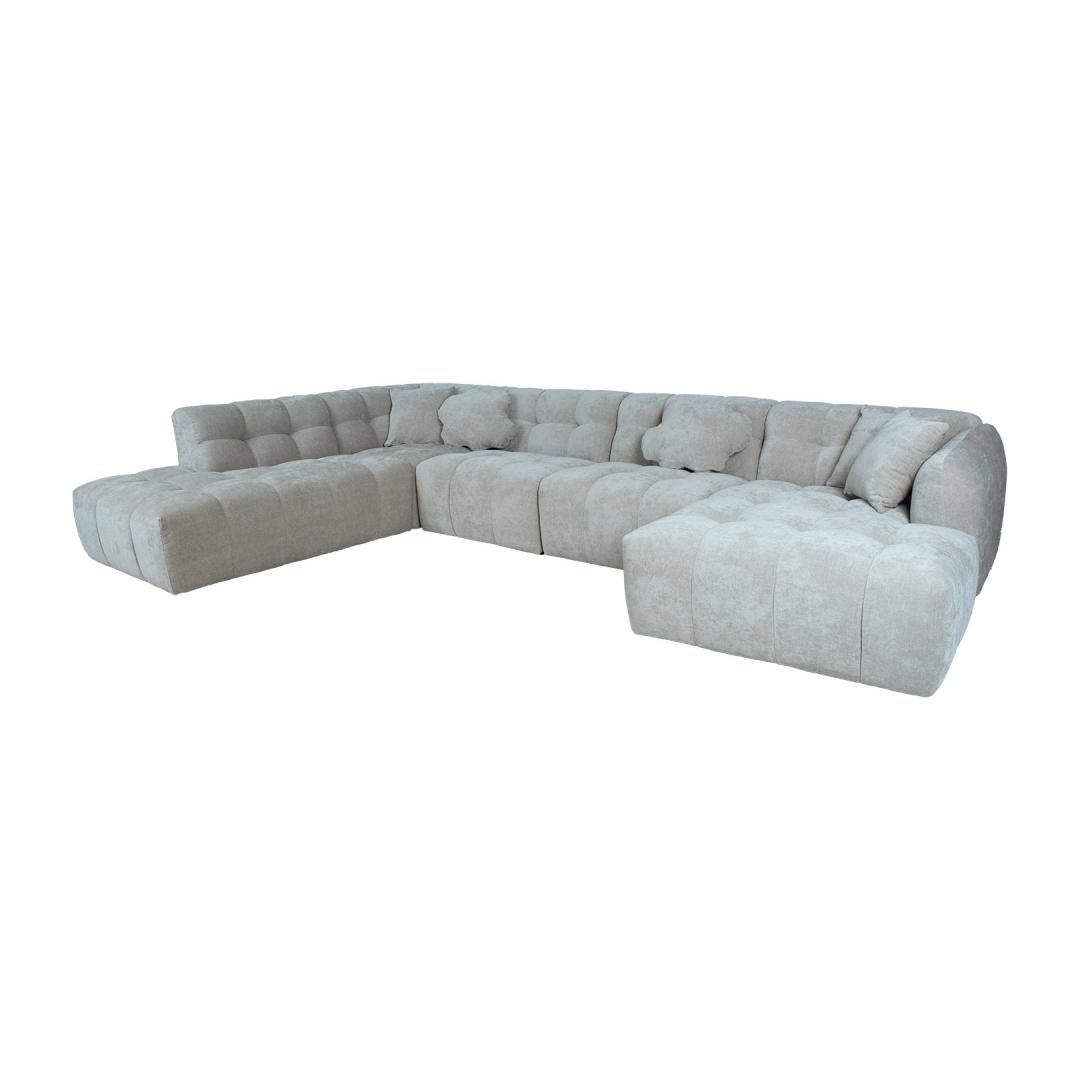 Sarja sisältää 5 sohvatyynyä: 43x43cm /3kpl, pilvenmuotoinen tyyny 60x40cm/2kpl. Kulmasohva FORTE U-muotoinen, pidempi kulma vasemmalla, beez.