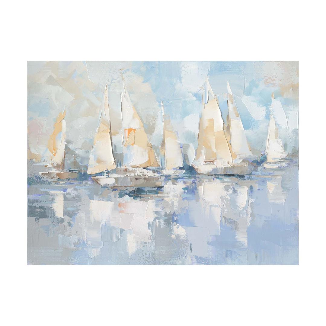 Öljyvärimaalaus 120x90cm, purjeveneet merellä