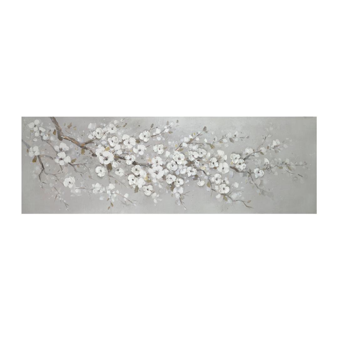 Öljyvärimaalaus 50x150cm, valkoiset kirsikankukat